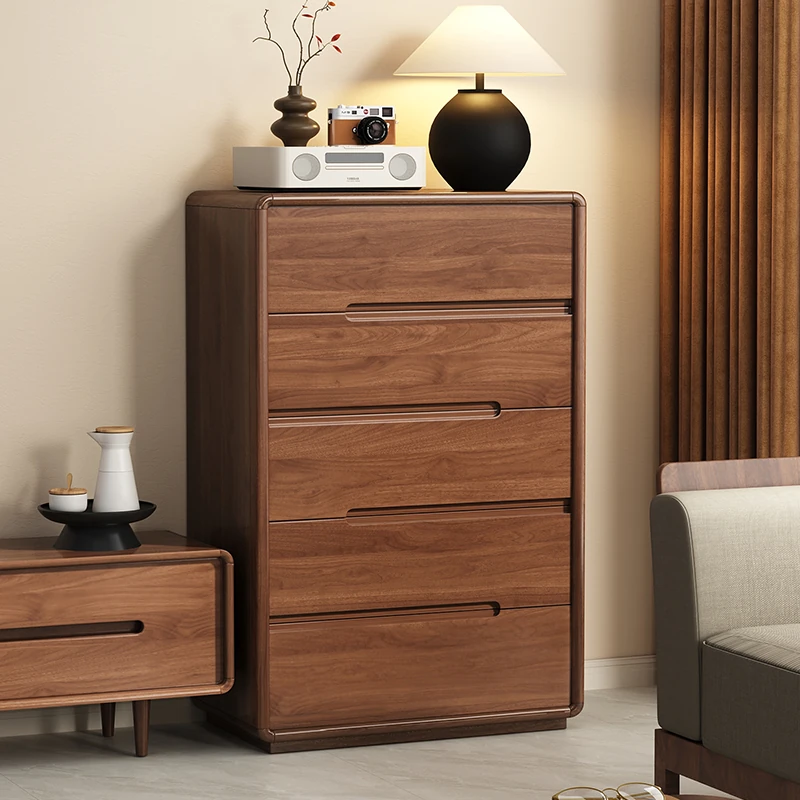 "Sanmeng Solid Wood Five-Drawer Dresser - Stylish Wall-Mounted Cabinet for Living Room and Bedroom | Versatile Storage for Bedside, End of Bed, and Room Organization"