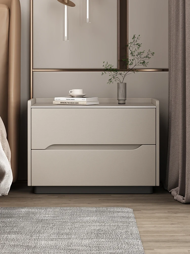 Elegant Solid Wood Nightstand - Modern Minimalist Design with Stone Tabletop, 2023 New Arrival, Leather Accent for Stylish Bedroom Storage