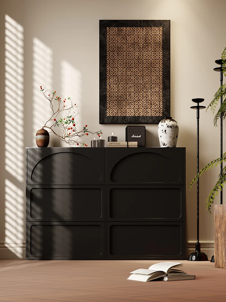 Dreamy Black Solid Wood Ultra-Slim Shoe Cabinet - 2024 Hot New Arrival for Home Entryway and Indoor Use, Stylish and Functional Storage Solution for Your Shoes
