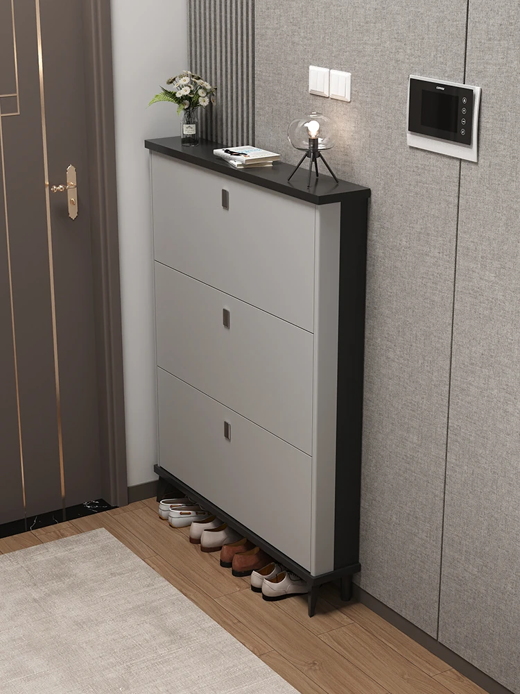 Slim Wooden Shoe Cabinet - Ultra-Thin Entryway Storage Rack for Home, Perfect for Narrow Spaces and Corridors, Stylish and Functional Design to Keep Your Entrance Organized.