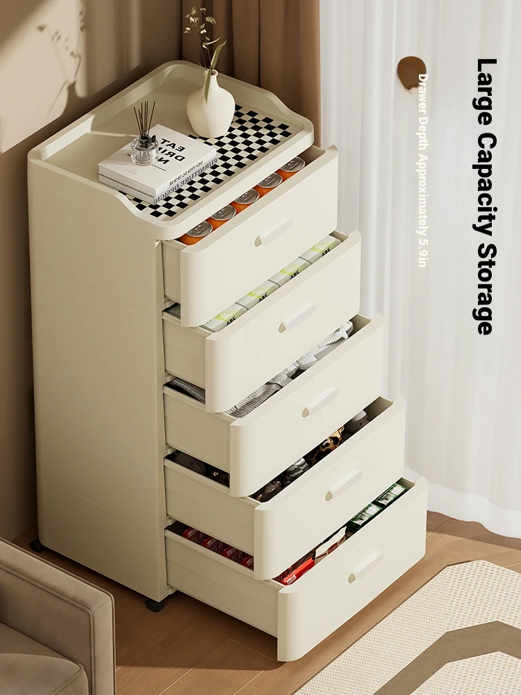 Thickened Drawer Storage Cabinet - Multi-Layer Space-Saving Organizer for Living Room and Bedroom, Stylish Japanese Nightstand, Perfect for Home Storage Solutions