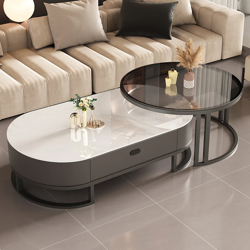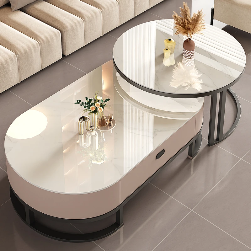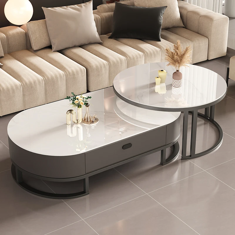2024 New Modern Minimalist Oval Coffee Table for Living Room - Stylish and Luxurious Lightweight Design, Perfect for Small Spaces, Ideal for Home Use