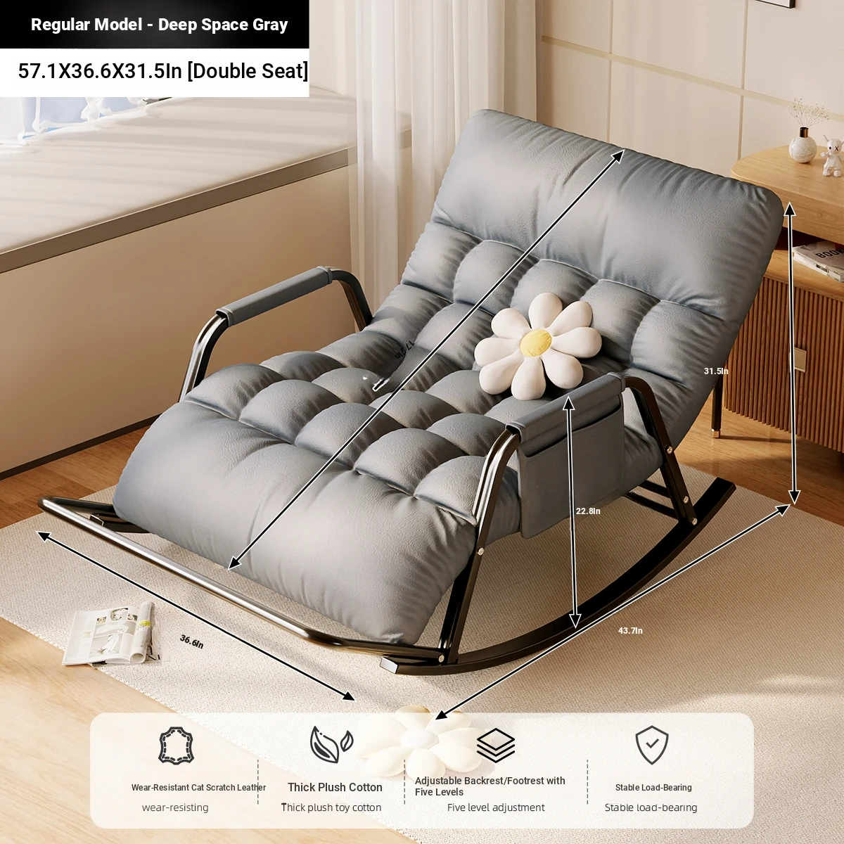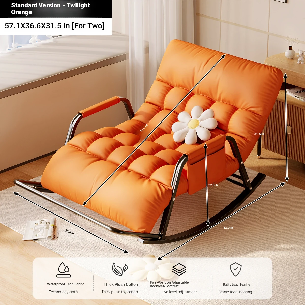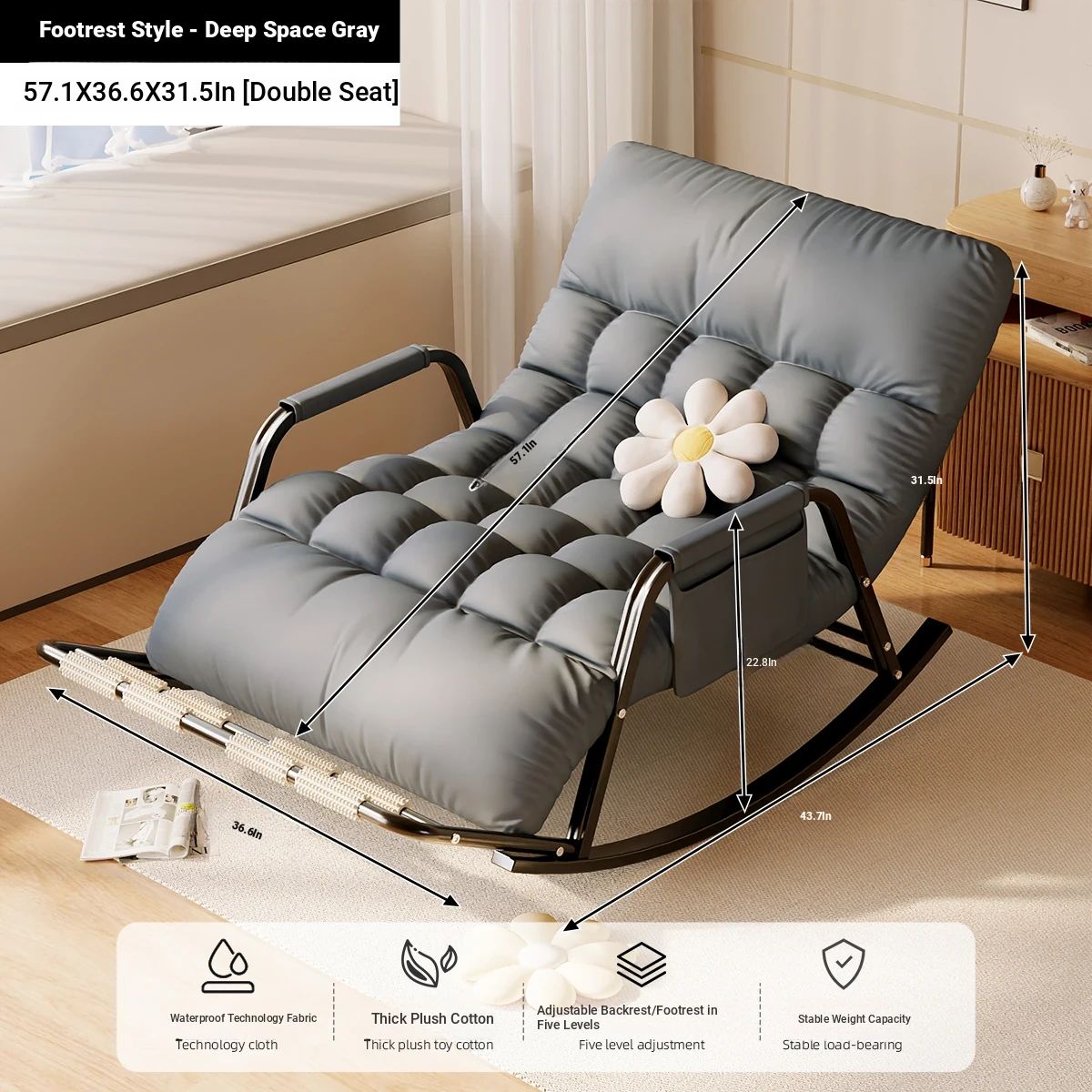 Cozy Lazy Sofa Chair for Adults - Rocking Lounge Chair, Perfect for Napping! Stylish Double Seat for Balcony & Living Room, Ideal for Home Relaxation.