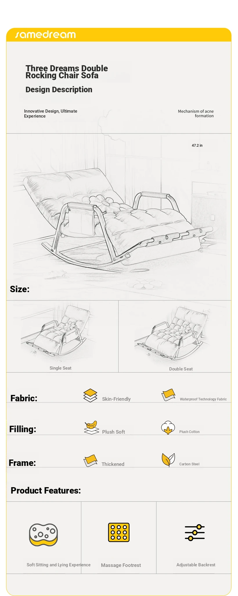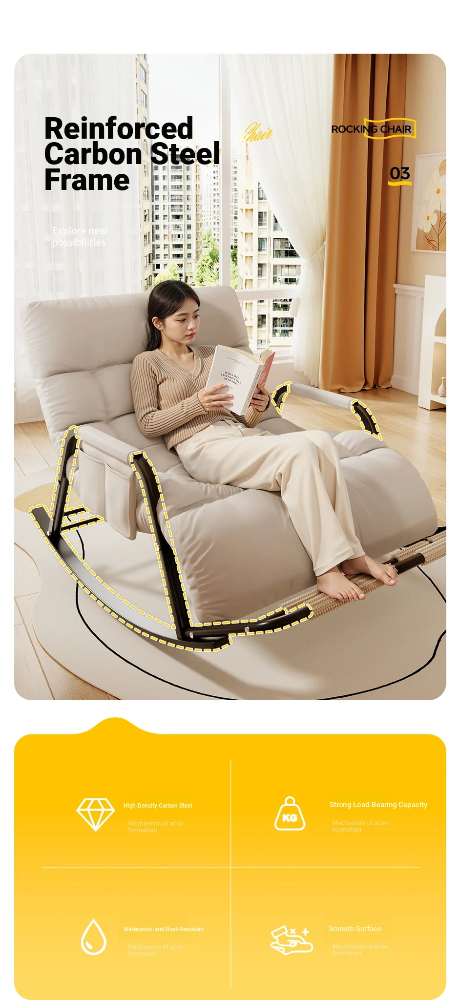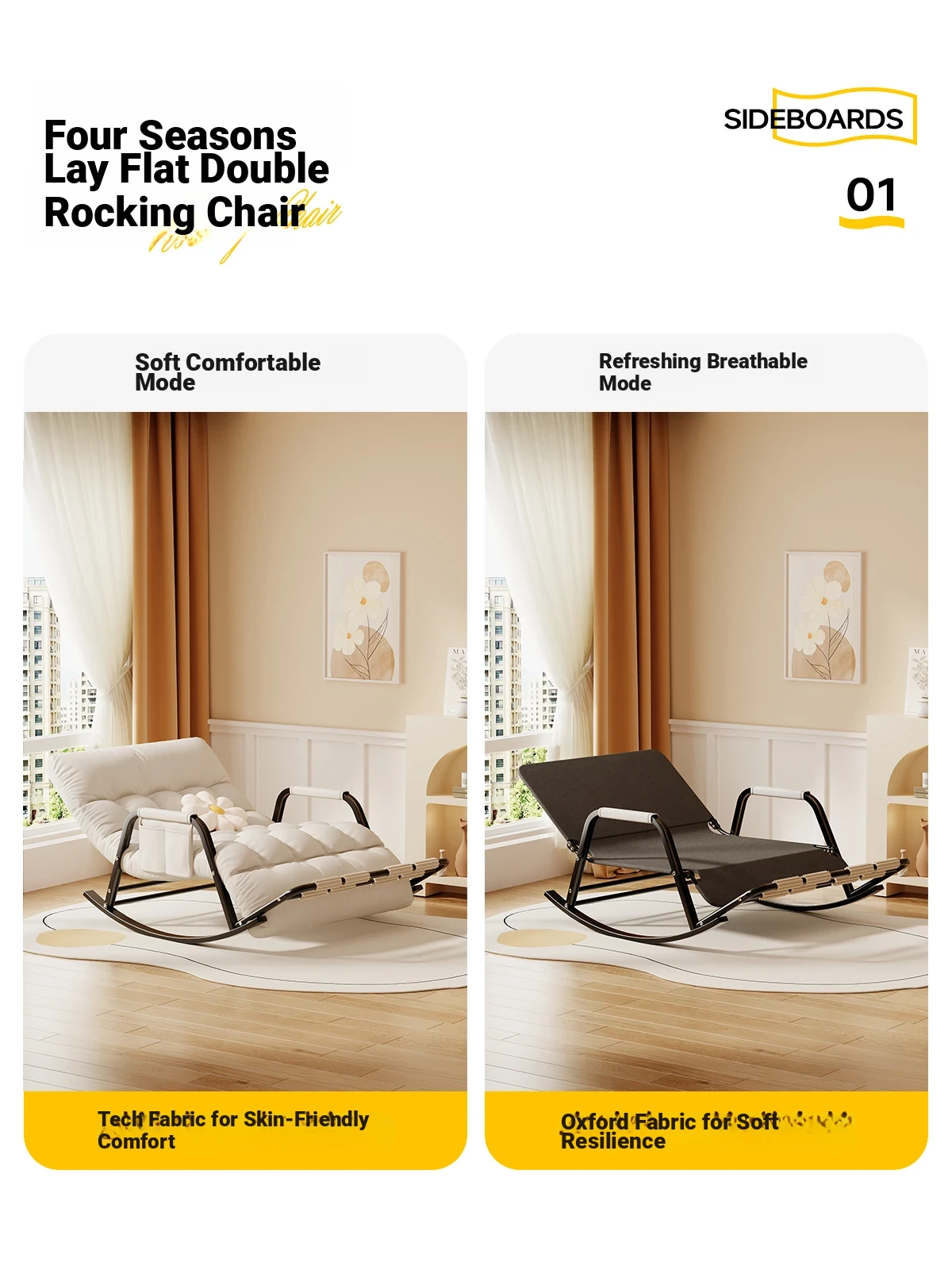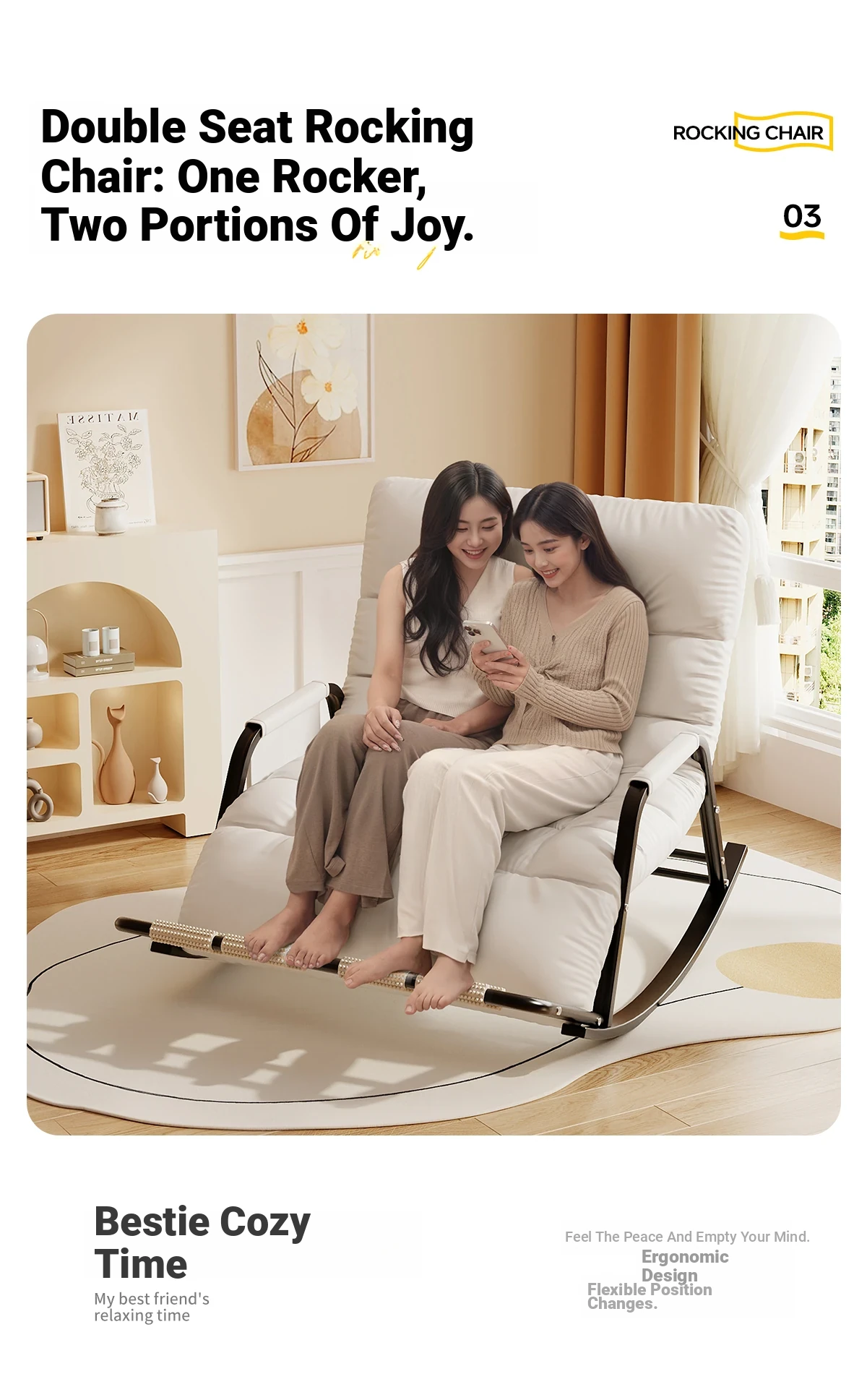 Cozy Lazy Sofa Chair for Adults - Rocking Lounge Chair, Perfect for Napping! Stylish Double Seat for Balcony & Living Room, Ideal for Home Relaxation.