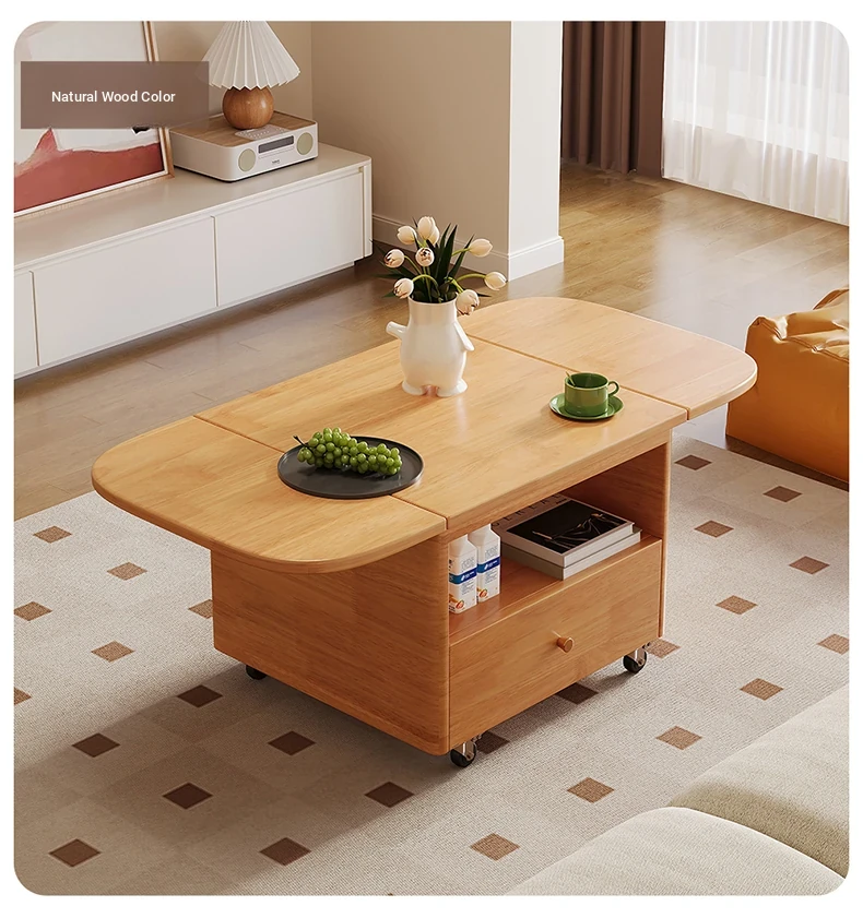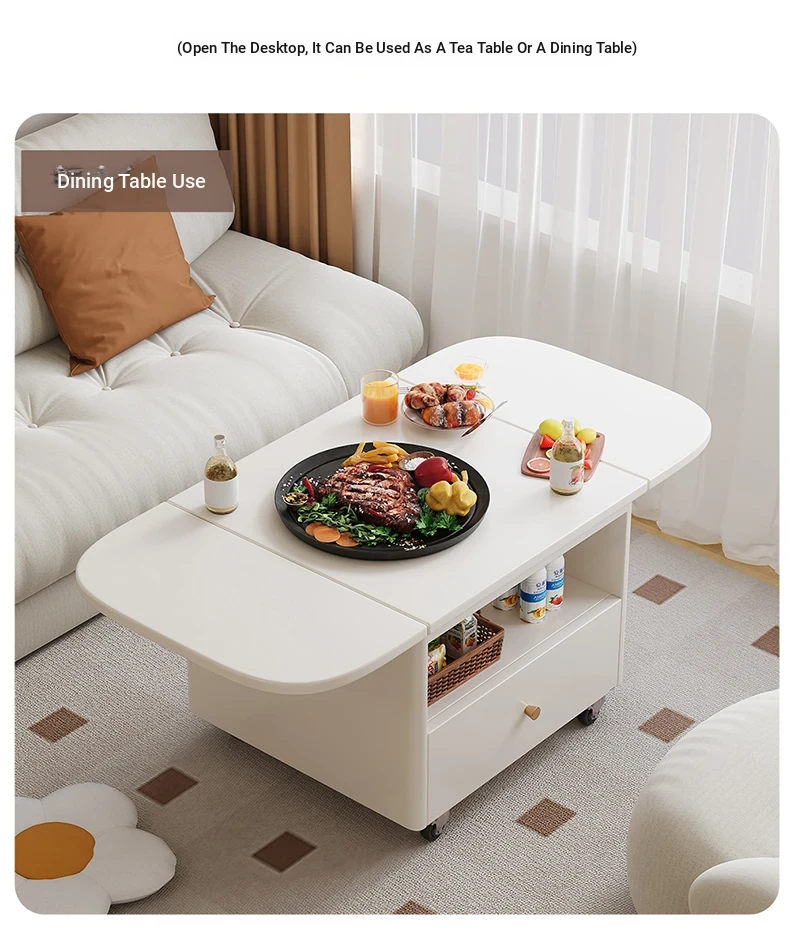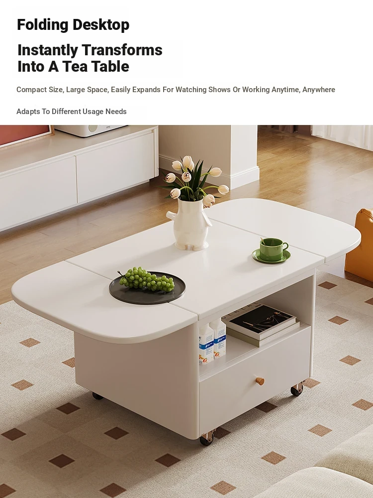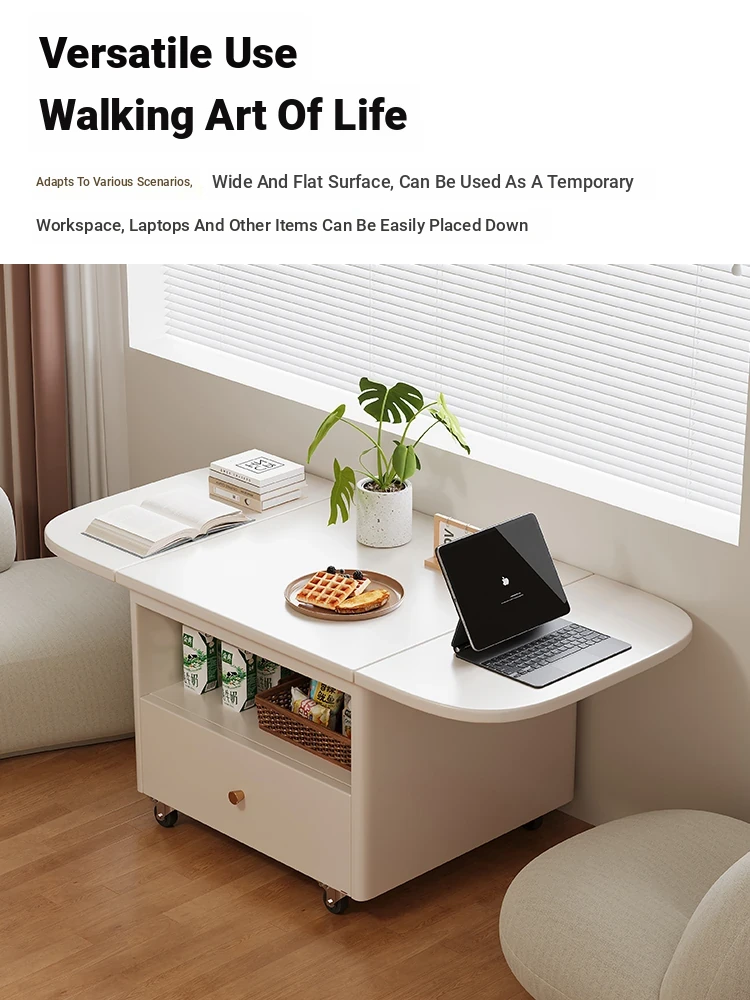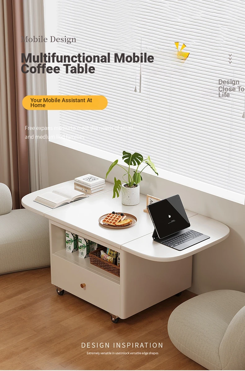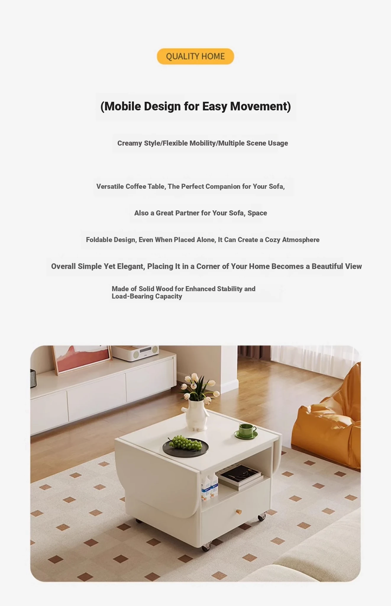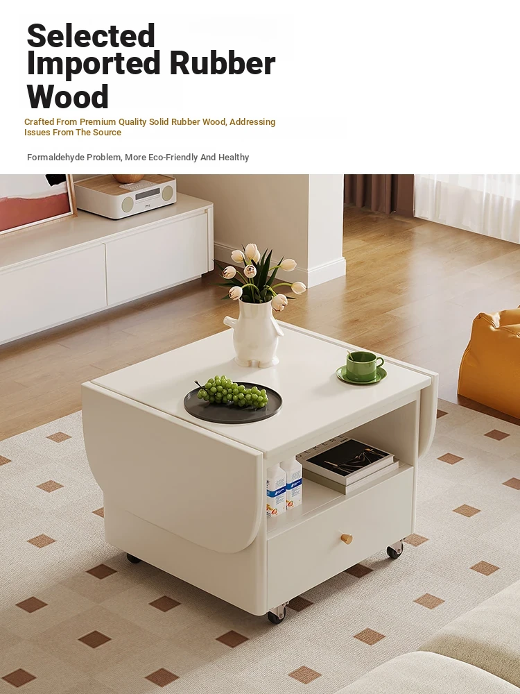 Creamy Wood Coffee Table - 2025 New Style, Movable & Foldable, Ideal for Living Room, Elegant and Luxurious Small Side Table for Home Use