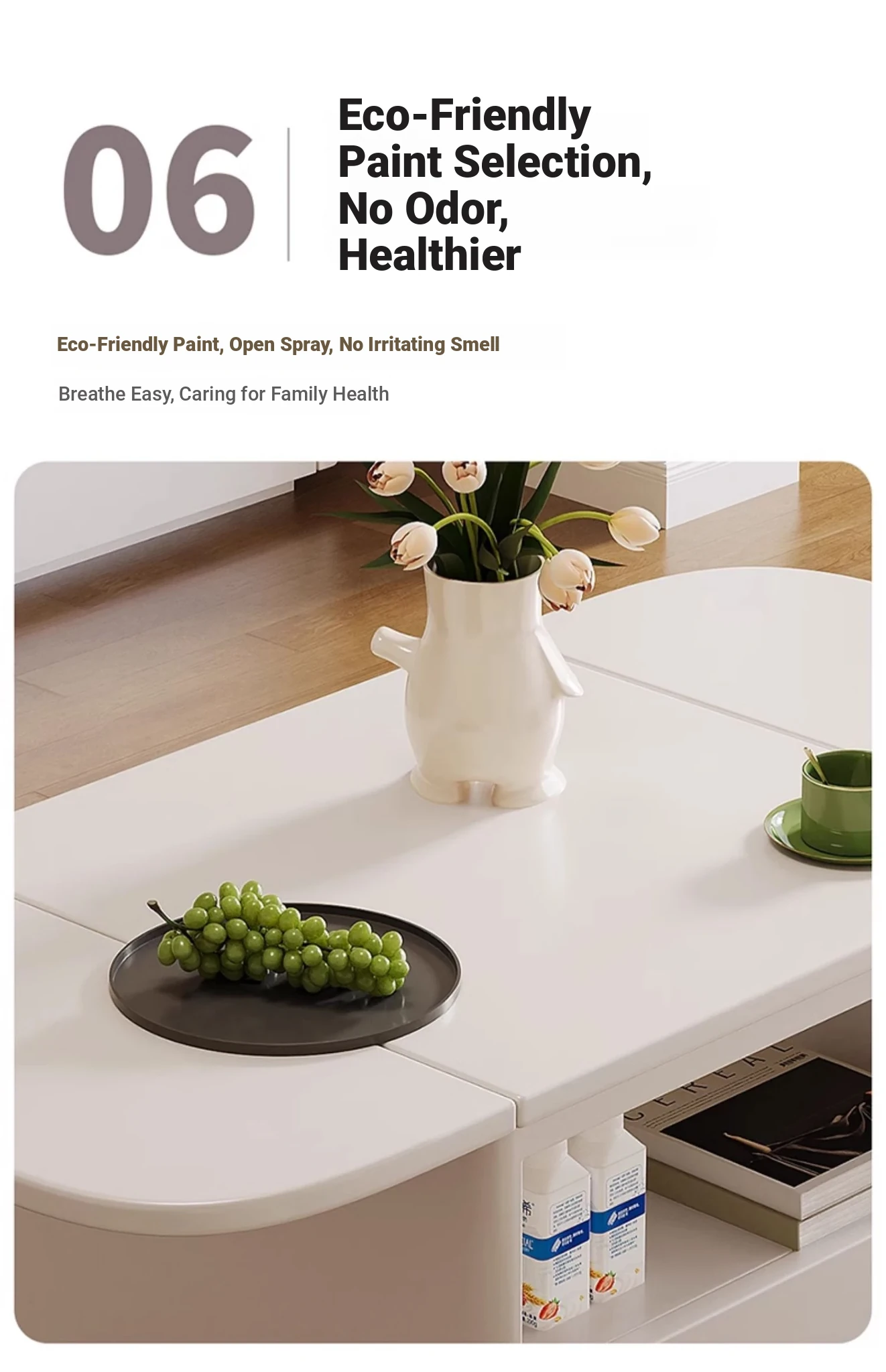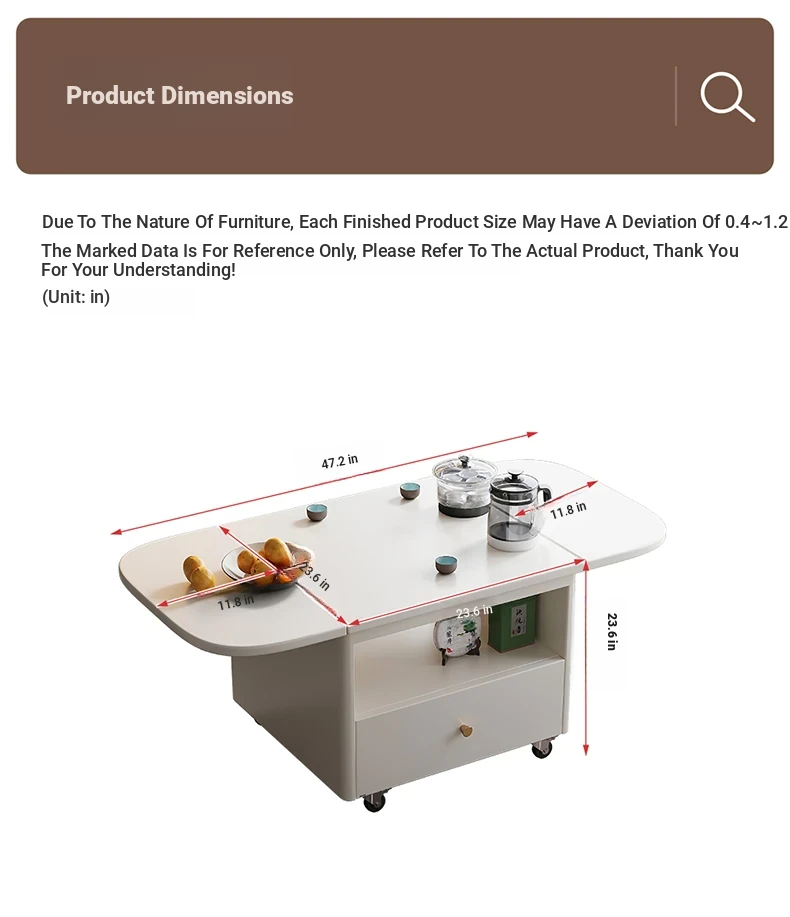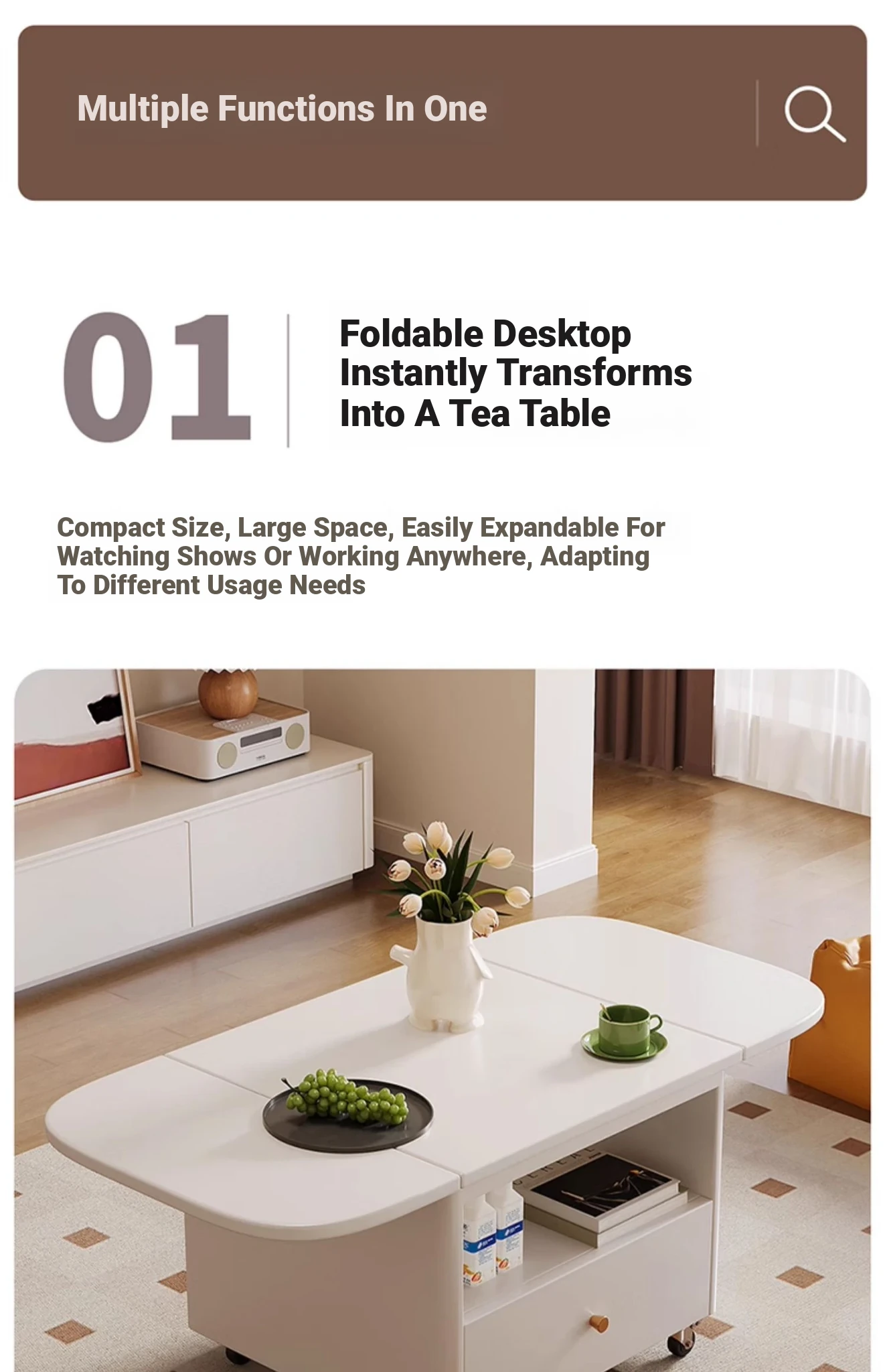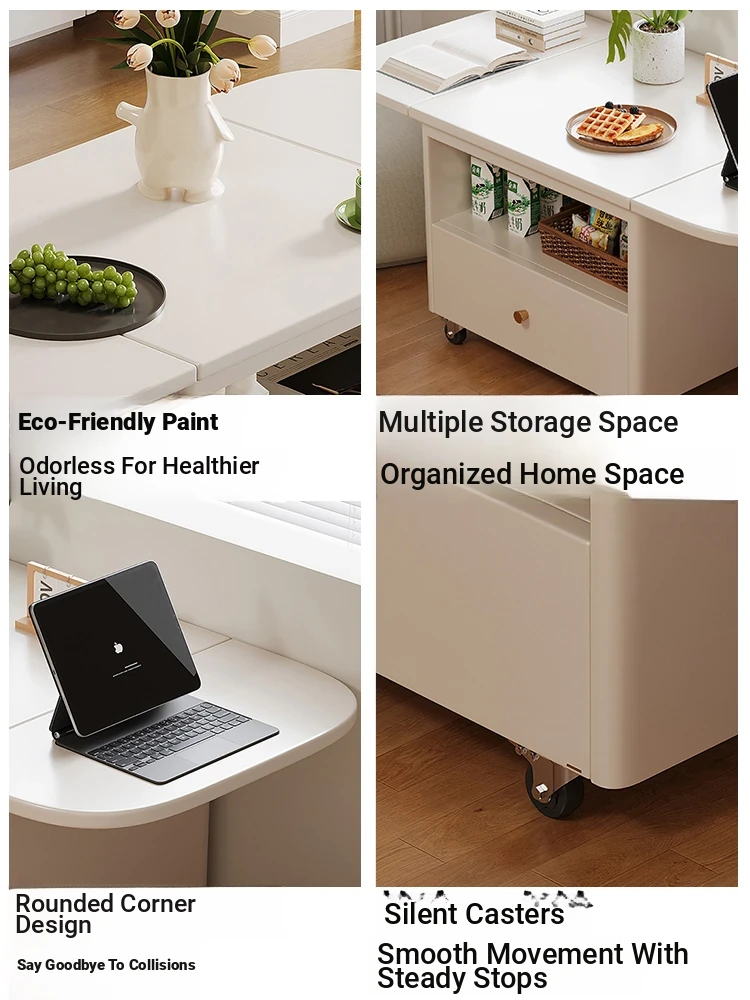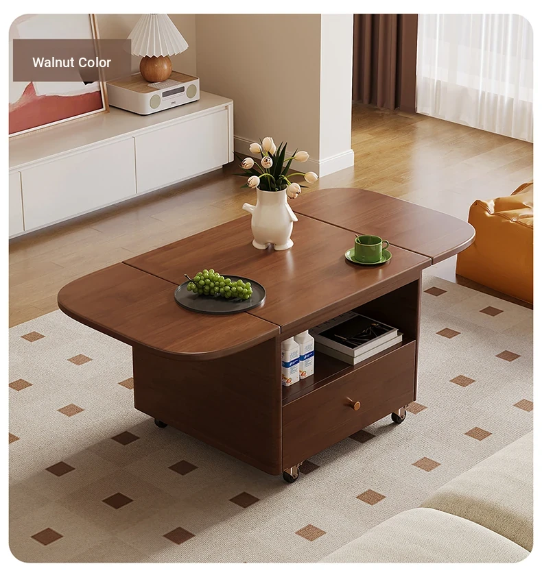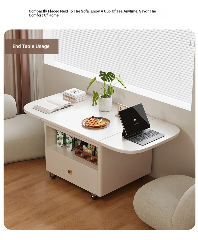 Creamy Wood Coffee Table - 2025 New Style, Movable & Foldable, Ideal for Living Room, Elegant and Luxurious Small Side Table for Home Use