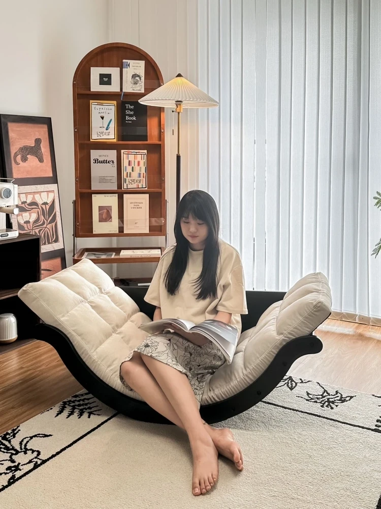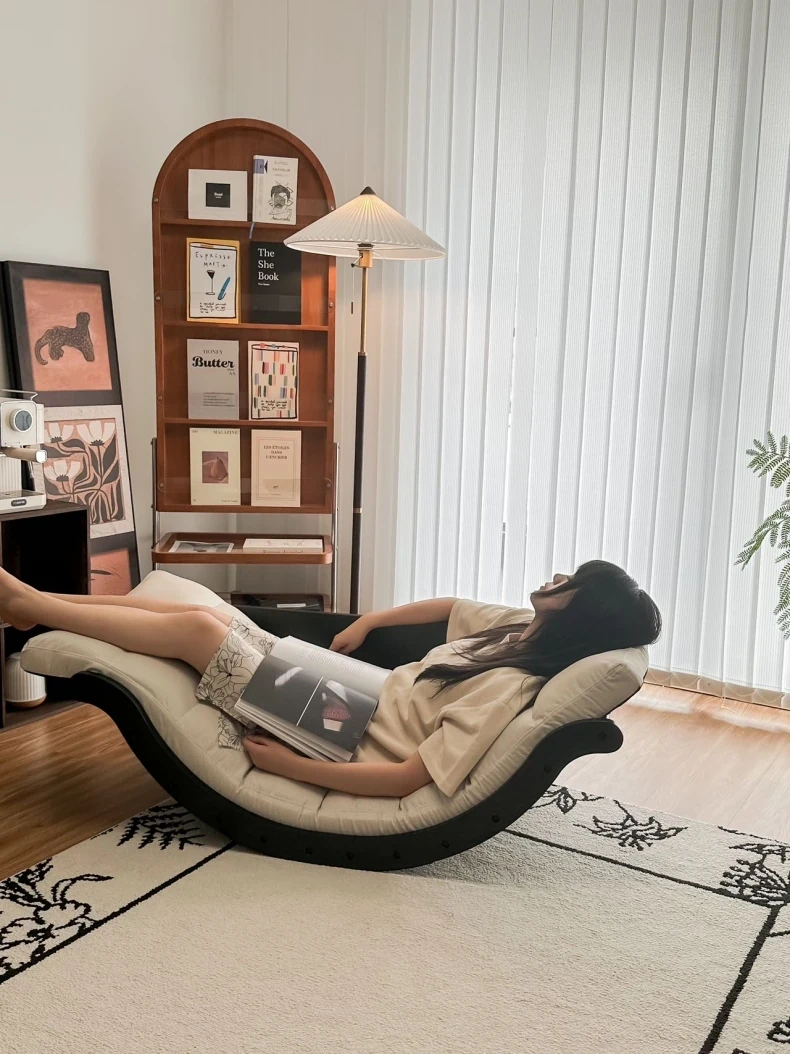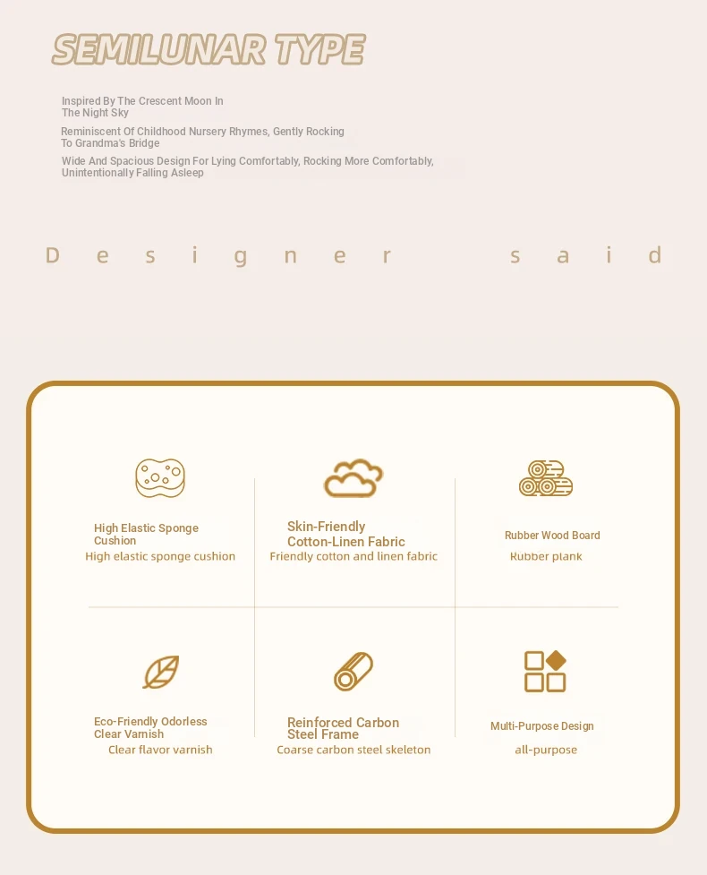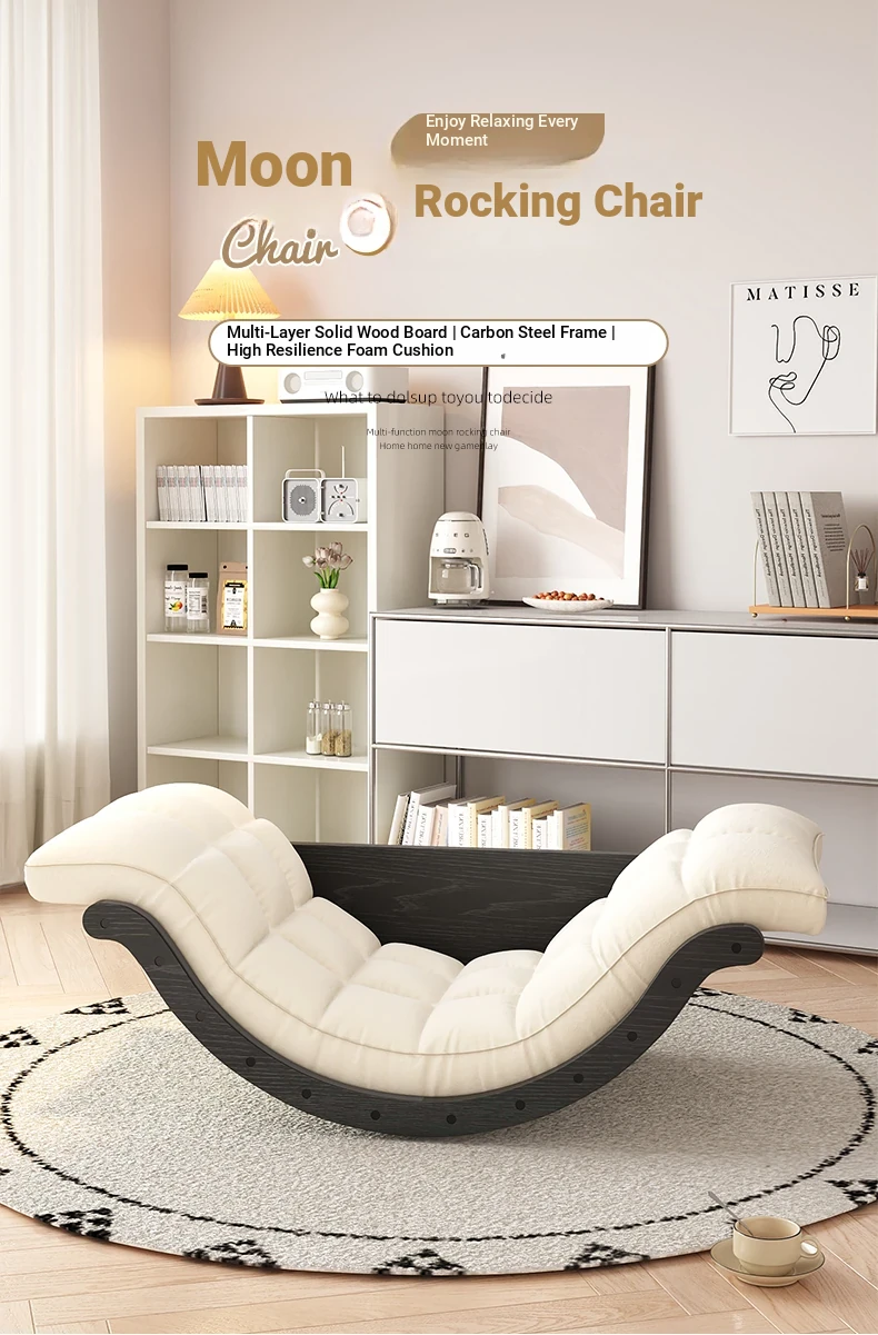 Dreamy Banana Boat Rocking Chair - Versatile Solid Wood Lounge Chair for Balcony, Retro Style Relaxation Chair for Adults, Perfect for Leisure and Comfort
