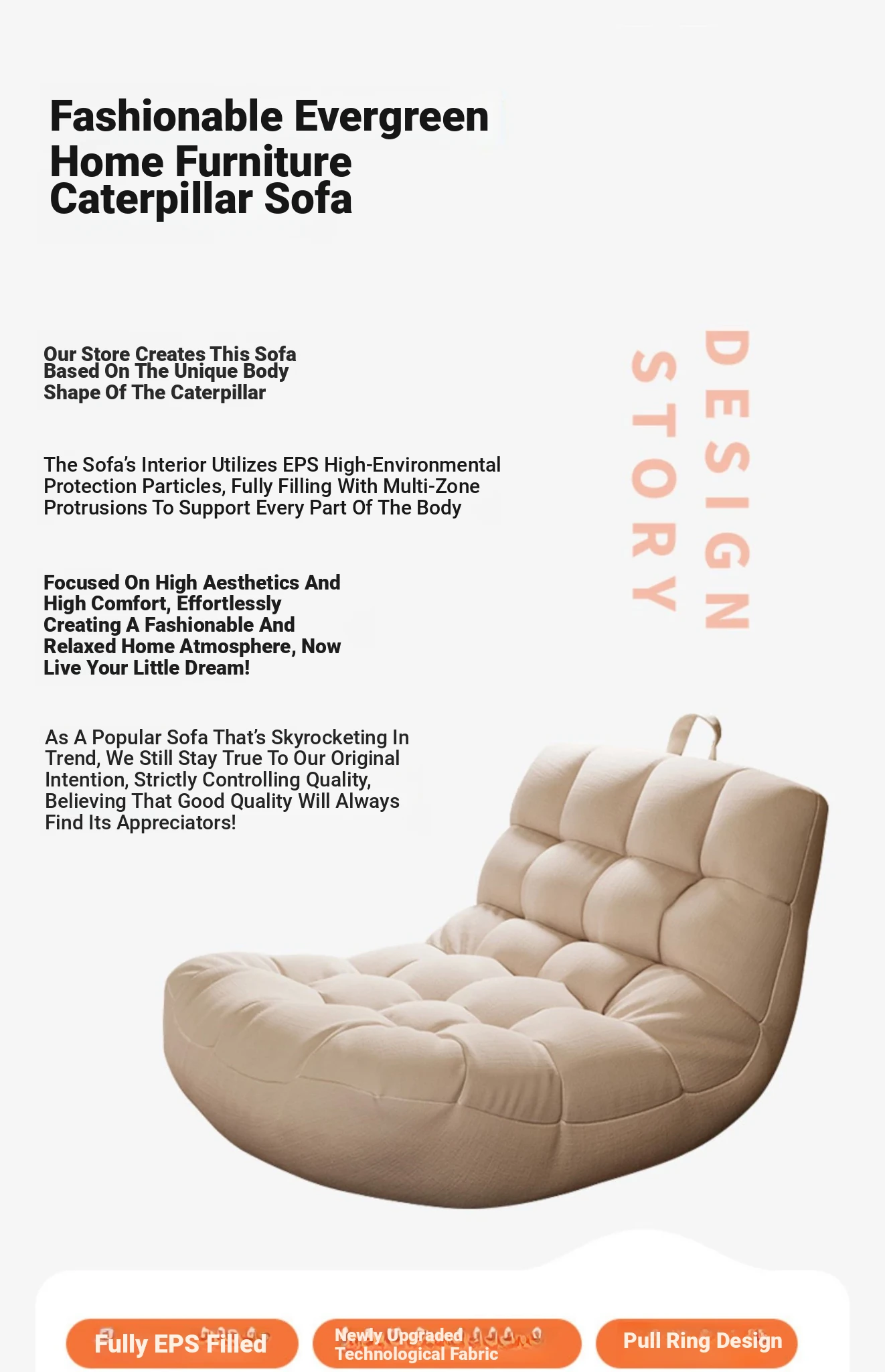 Dreamy Lazy Sofa - Convertible Sleeper Caterpillar Chair for Bedroom, Living Room, or Balcony - Cozy Single Lounge for Ultimate Relaxation and Comfort!