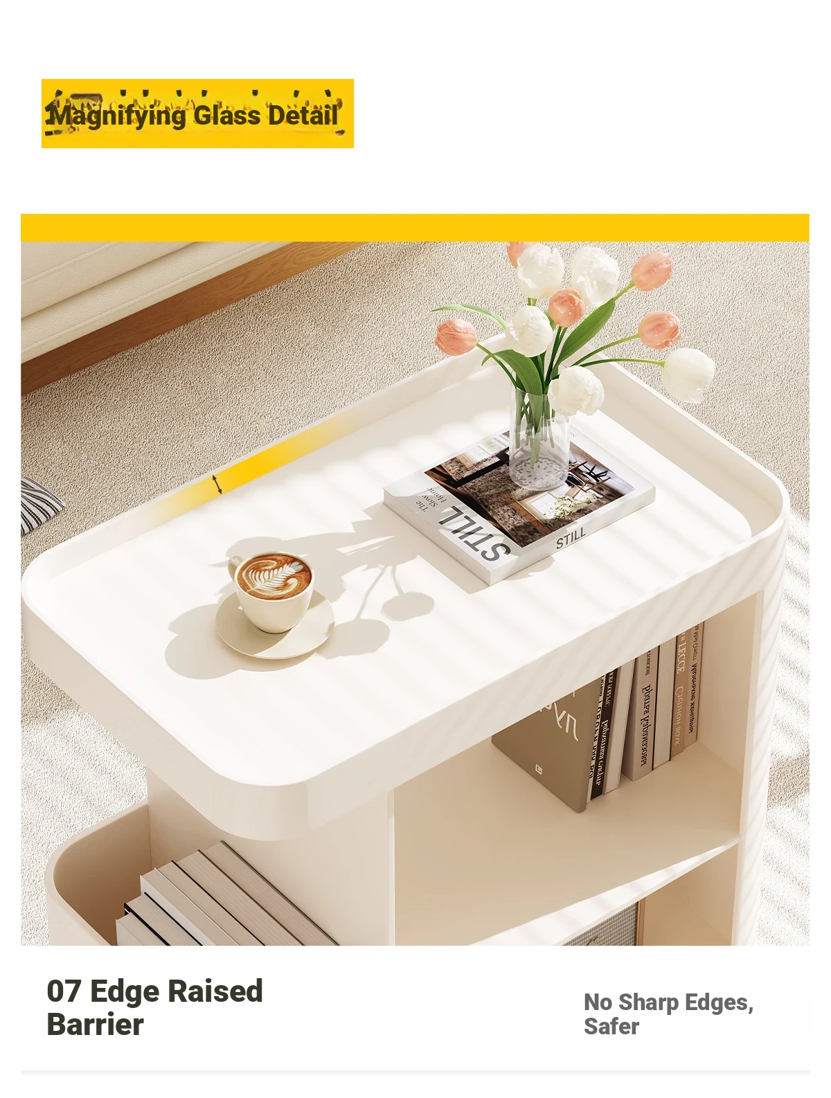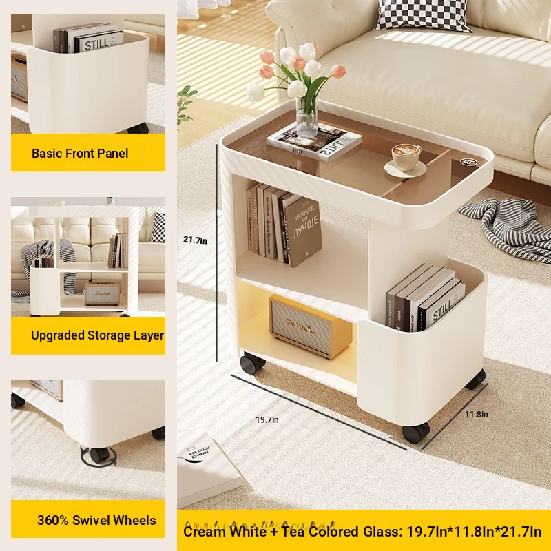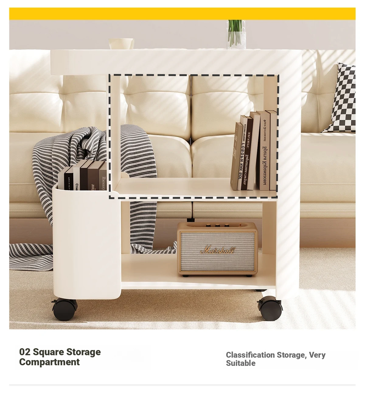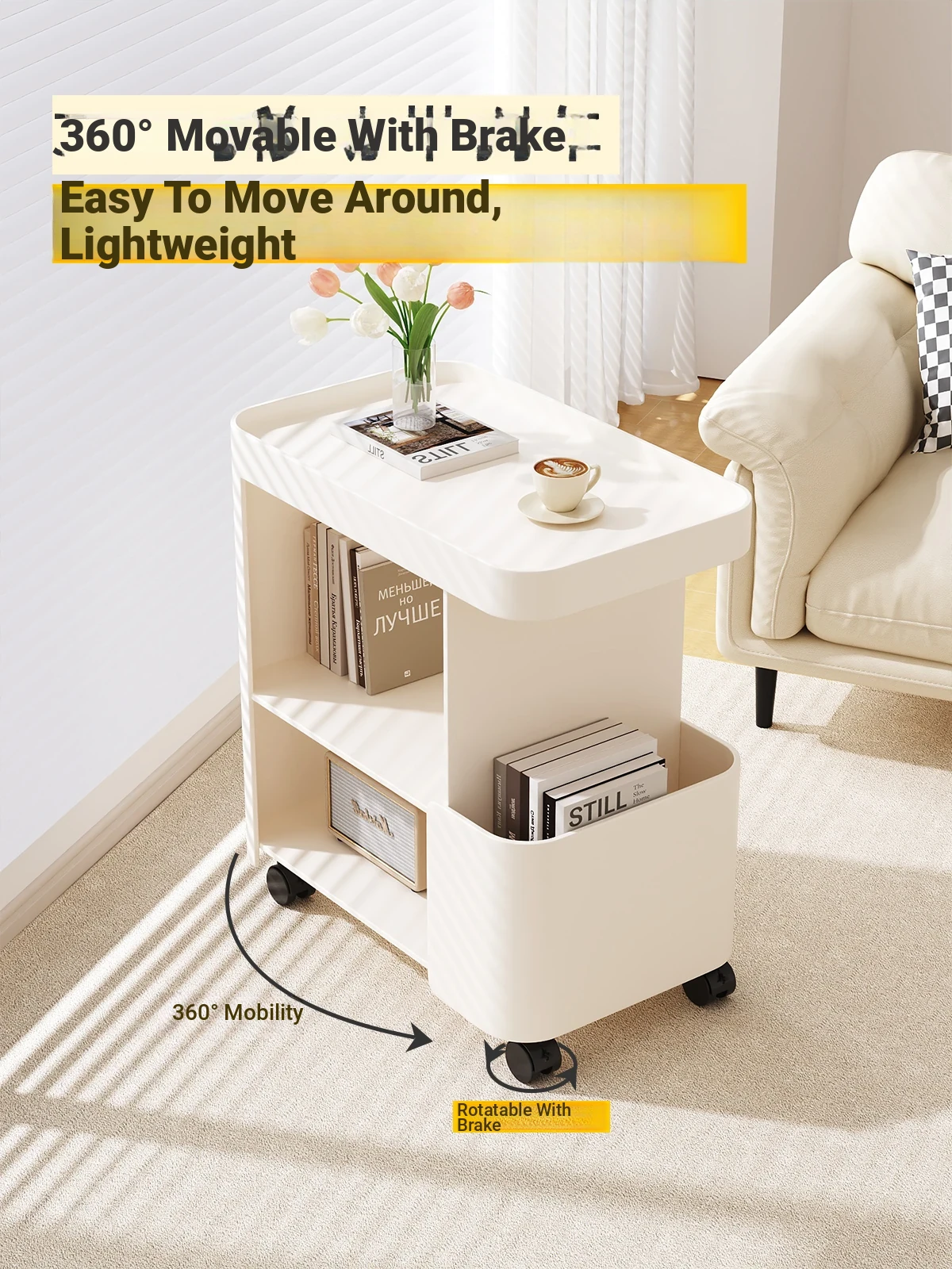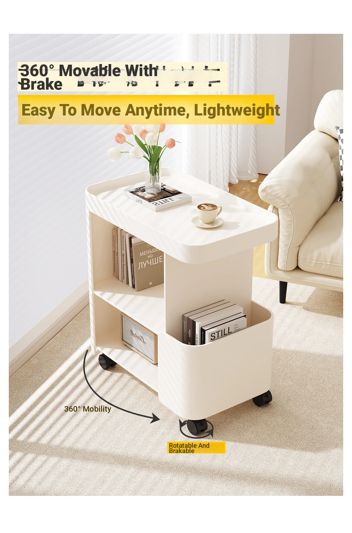 Dreamy Mobile Cream Wind Sofa Side Table, Nightstand with Storage, Small Tea Table, Iron Art Trolley - Perfect for Your Living Room!