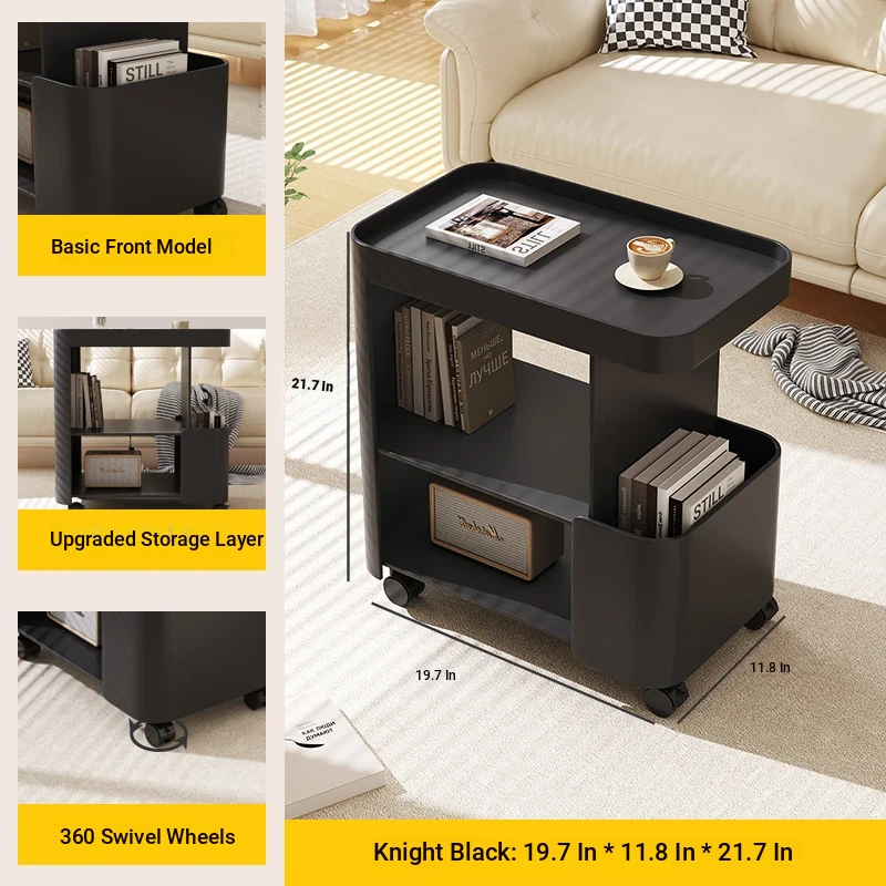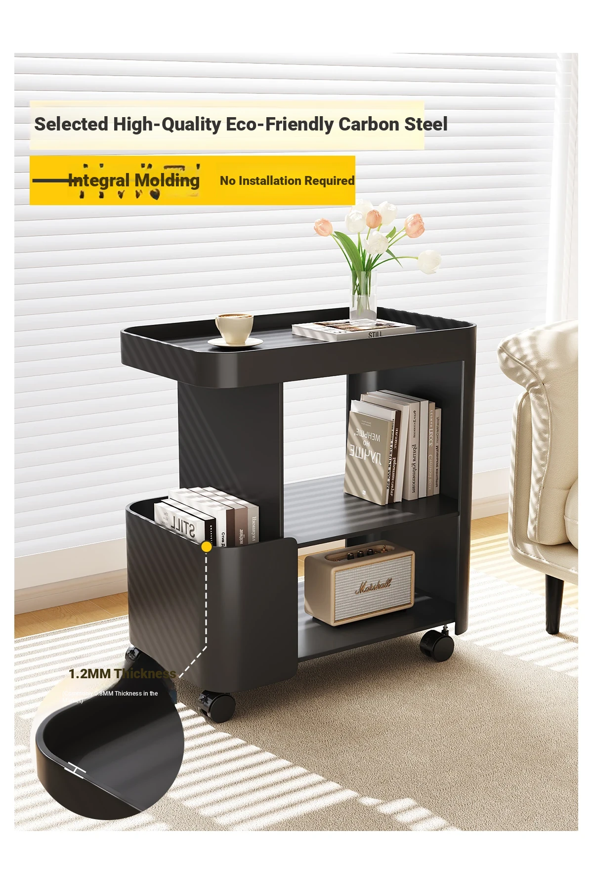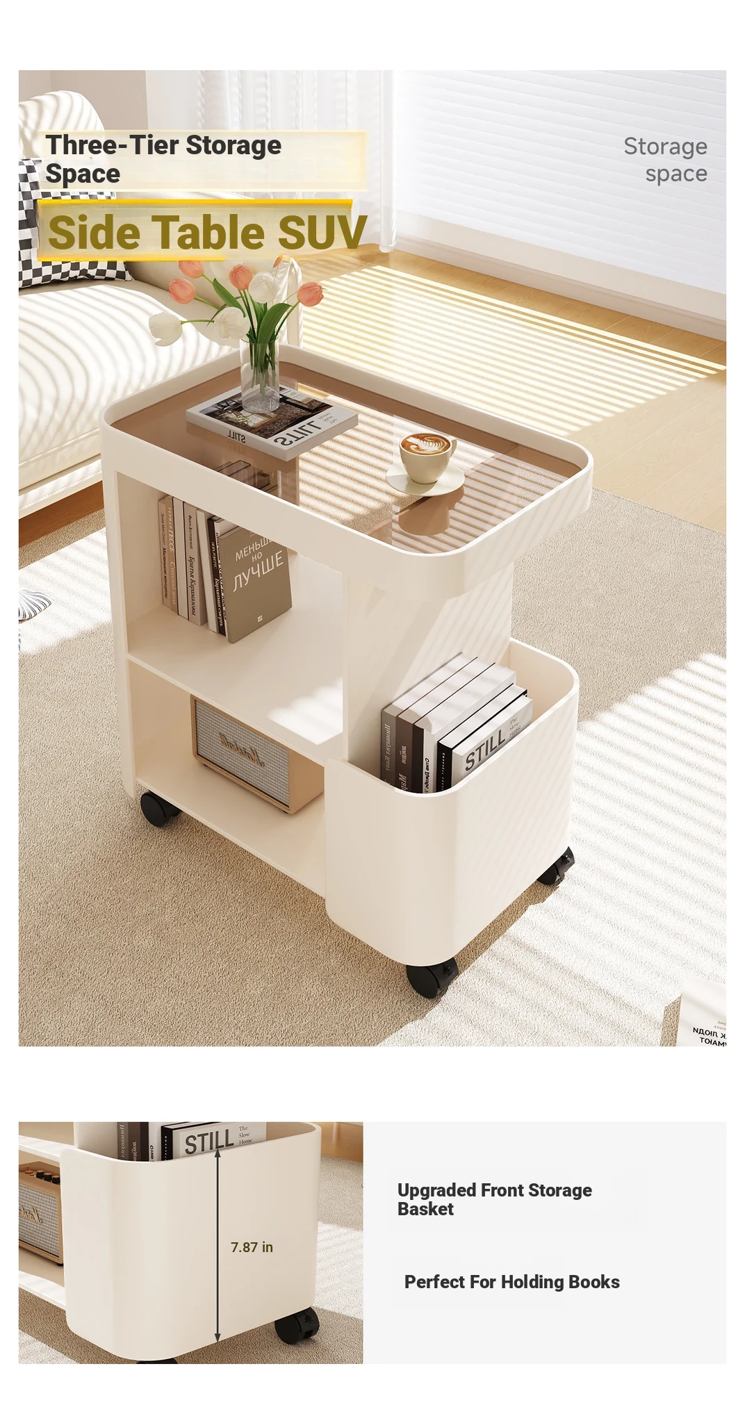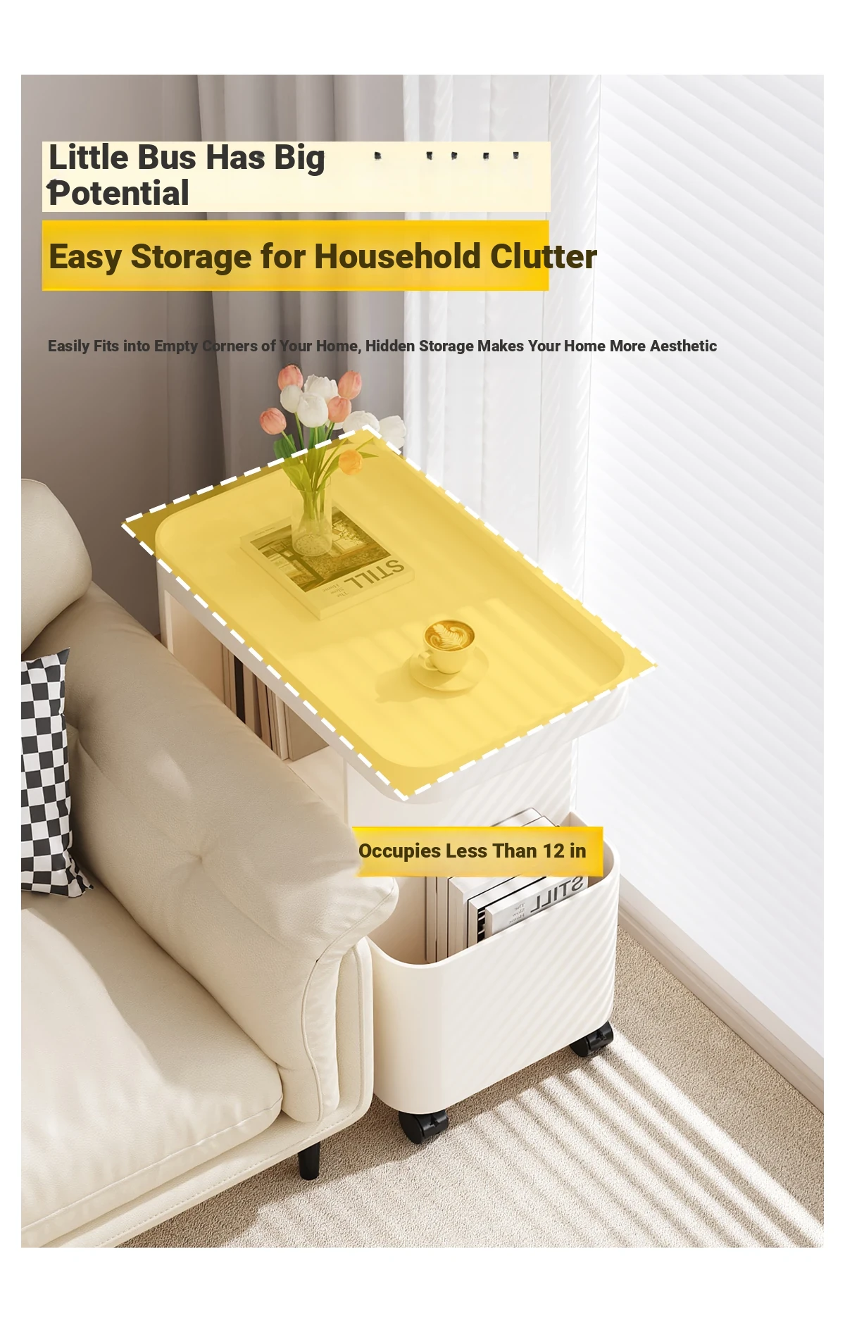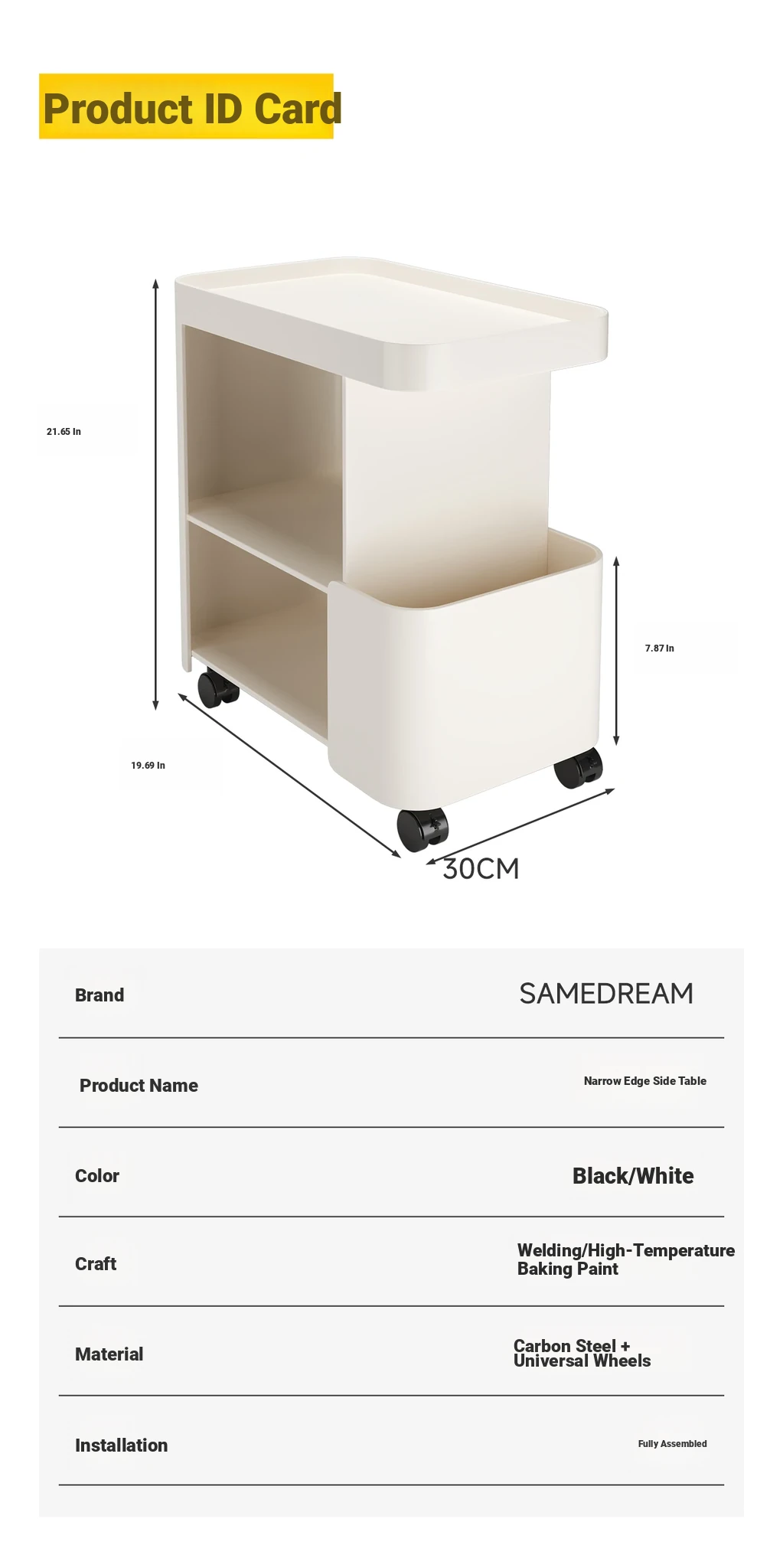 Dreamy Mobile Cream Wind Sofa Side Table, Nightstand with Storage, Small Tea Table, Iron Art Trolley - Perfect for Your Living Room!