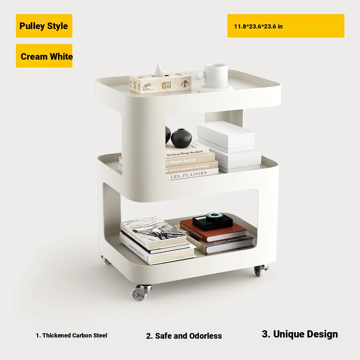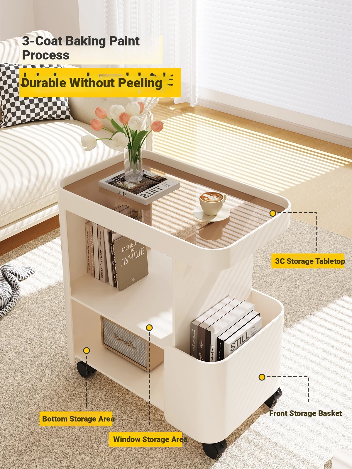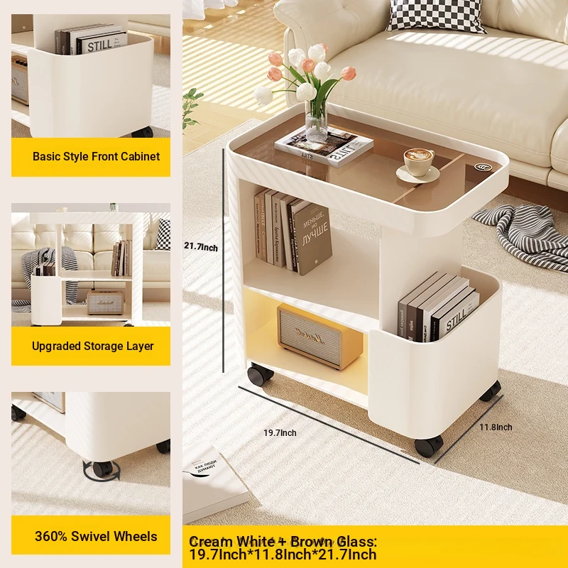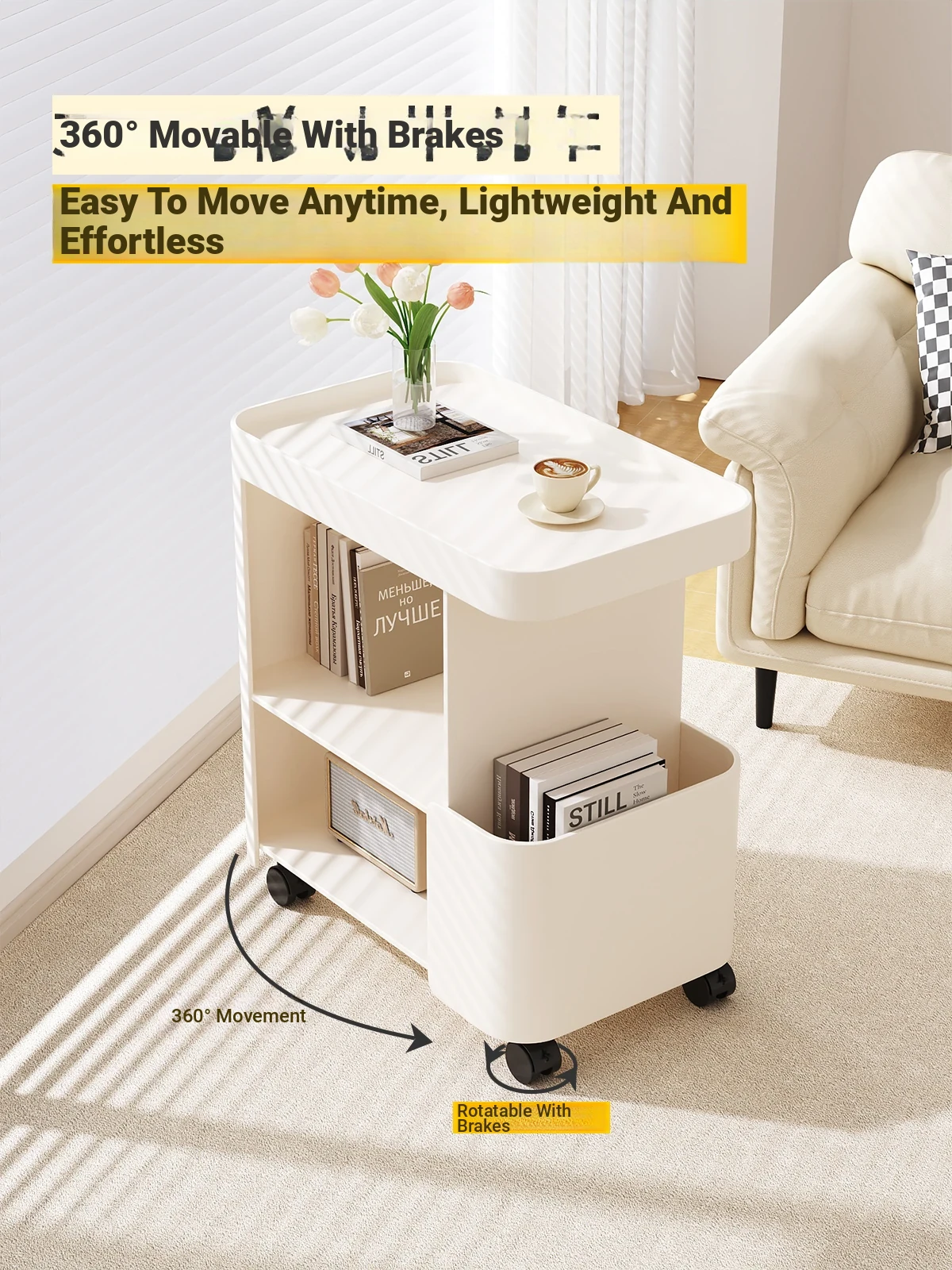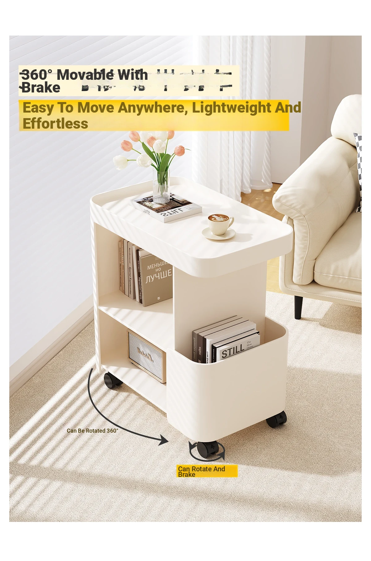 Dreamy Mobile Cream Wind Sofa Side Table - Versatile Nightstand & Living Room Tea Table with Iron Cart Design, Perfect for Modern Interiors!