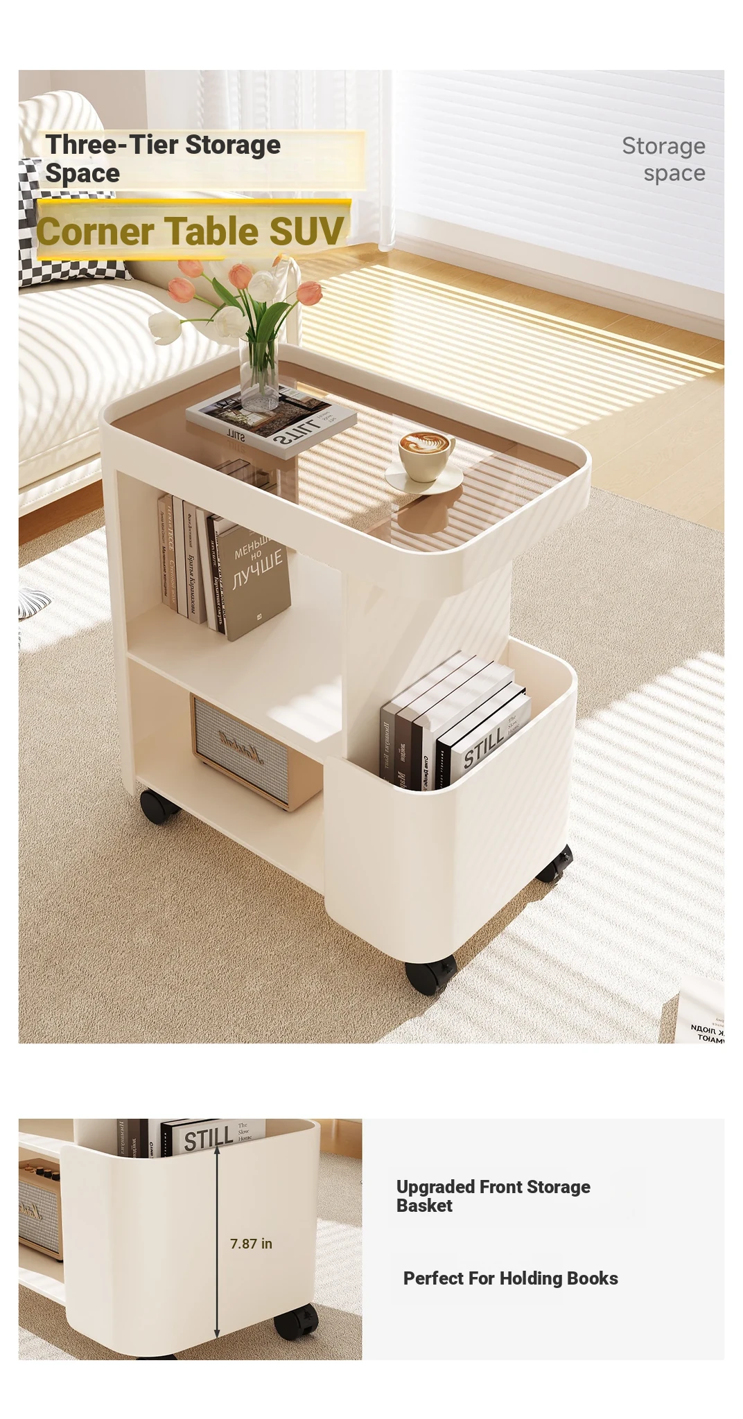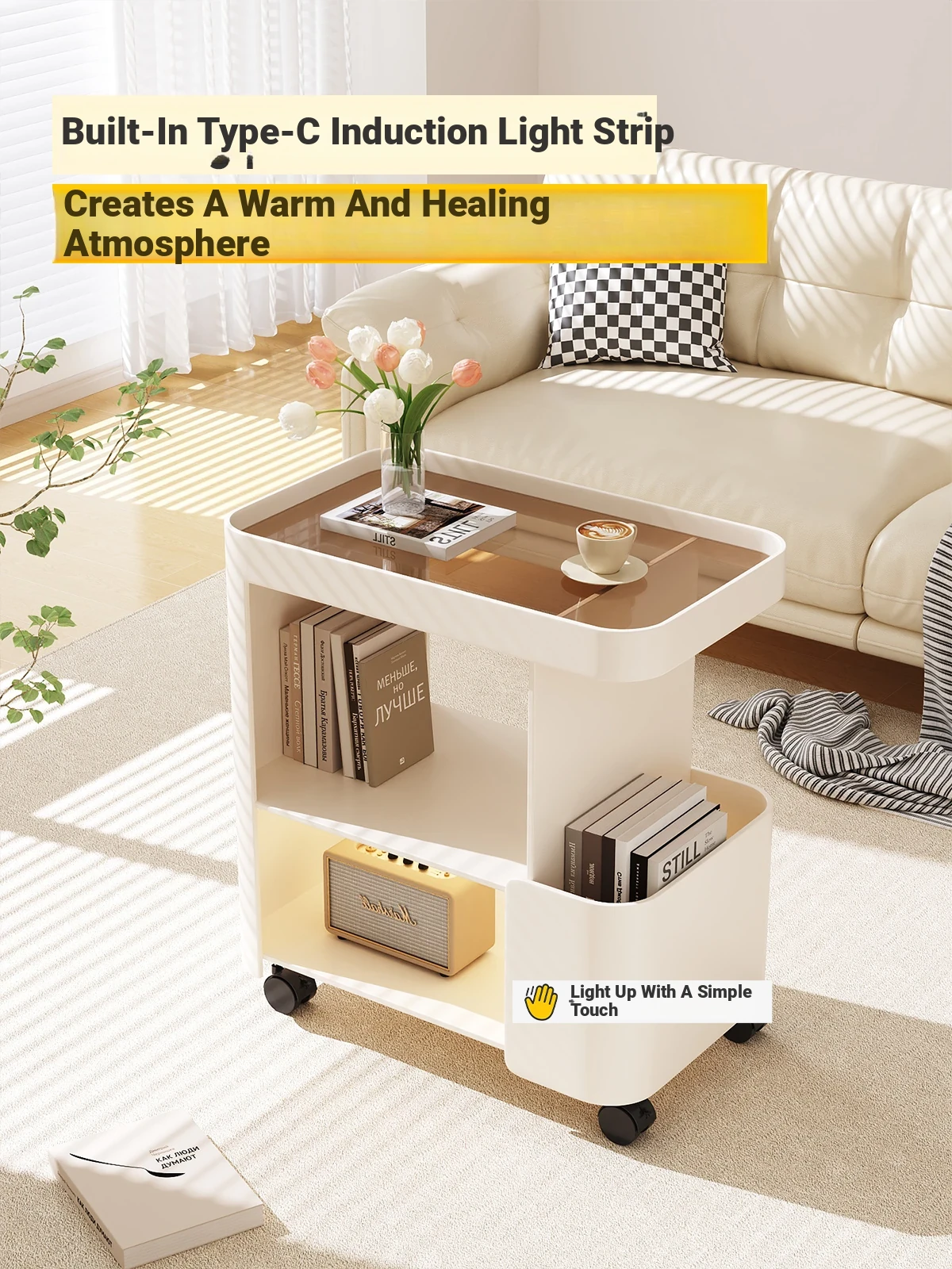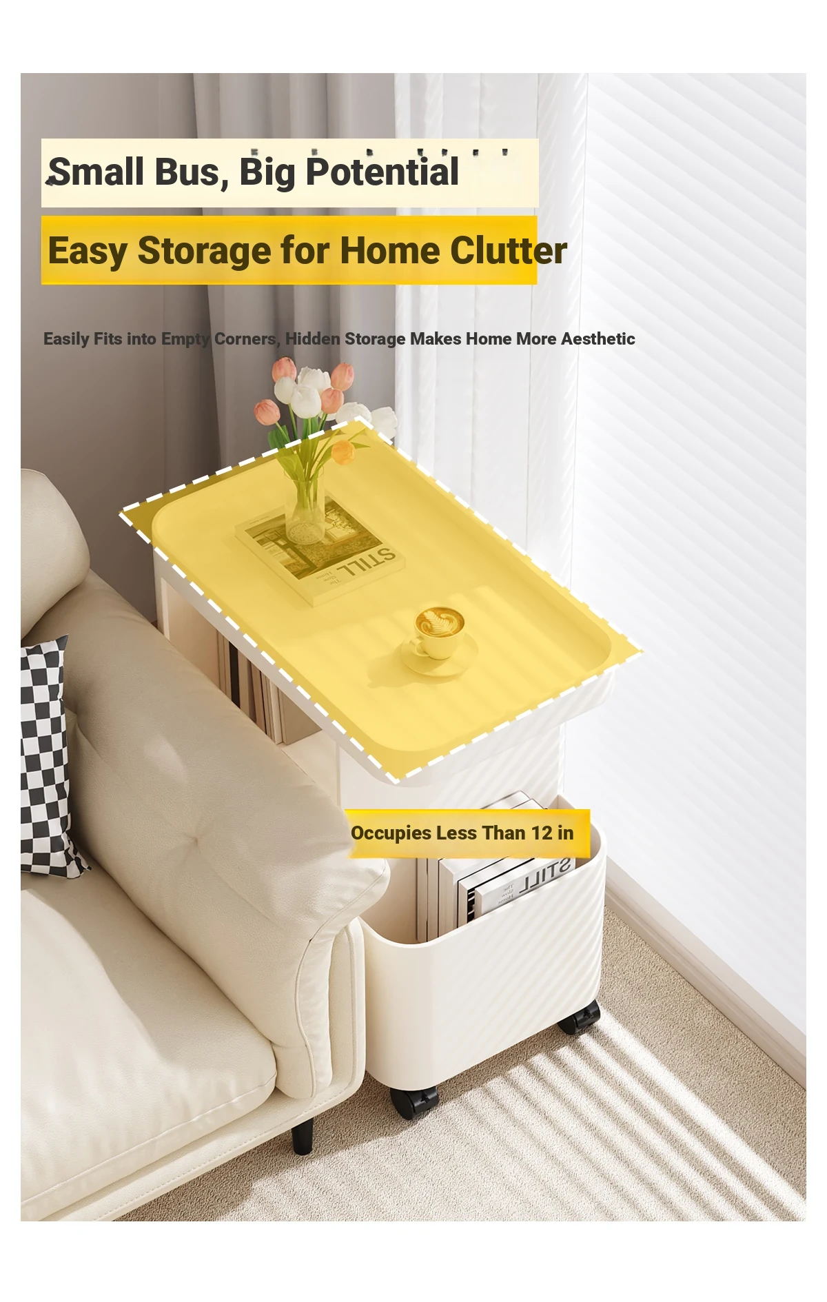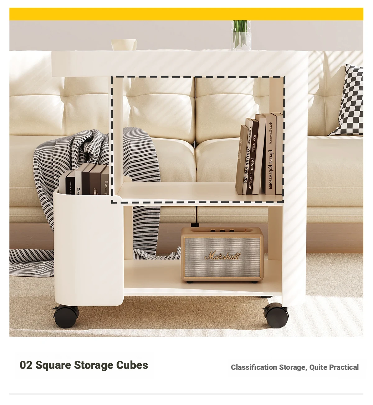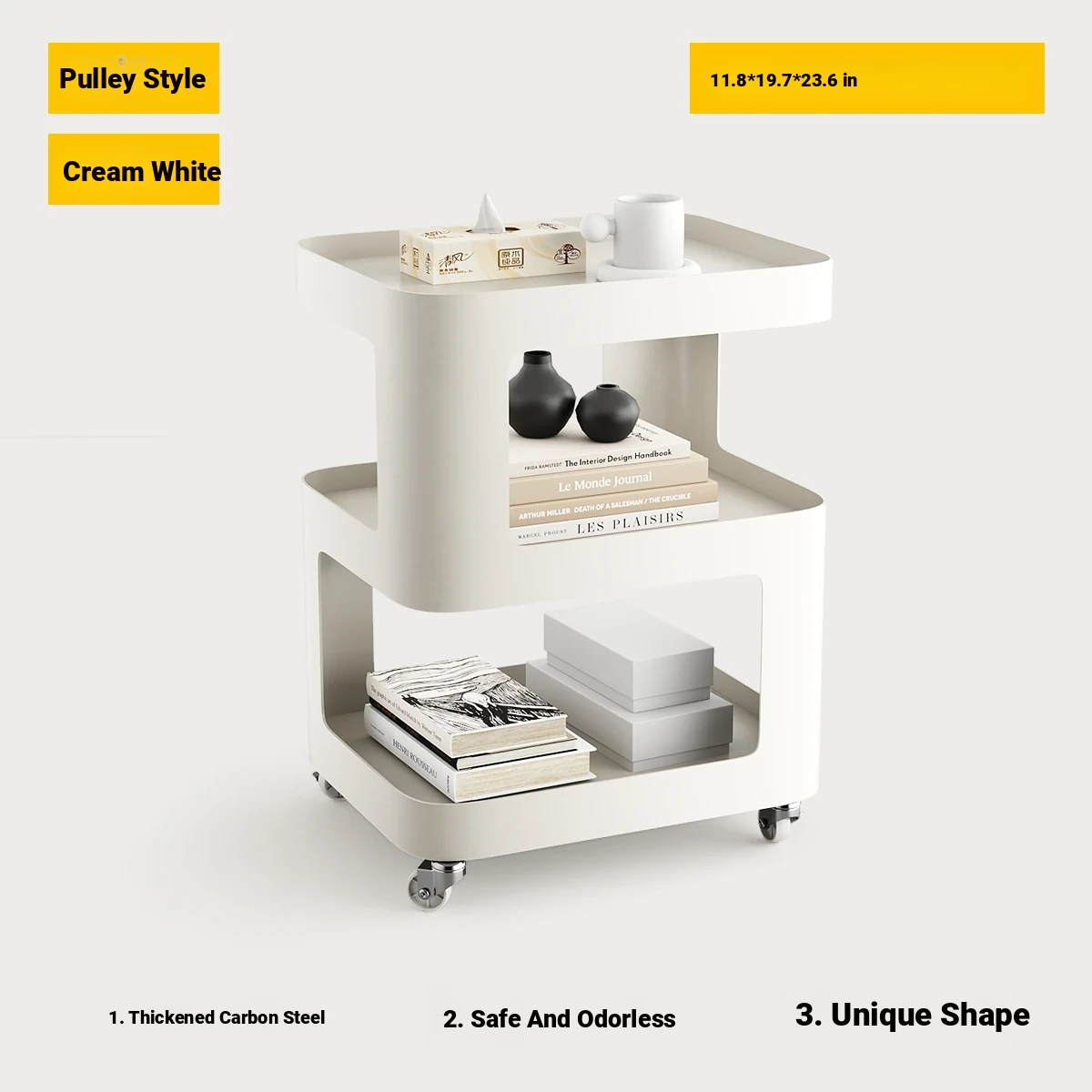Dreamy Mobile Cream Wind Sofa Side Table - Versatile Nightstand & Living Room Tea Table with Iron Cart Design, Perfect for Modern Interiors!