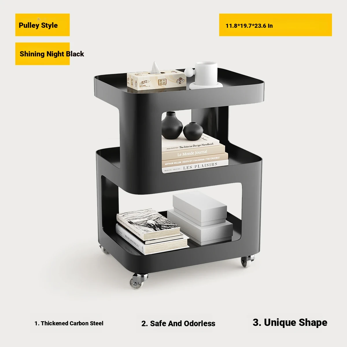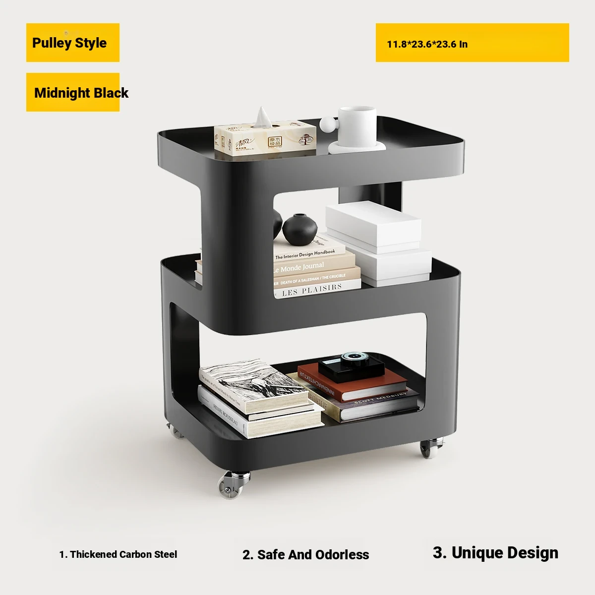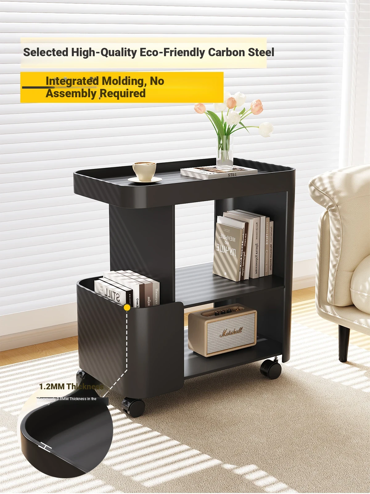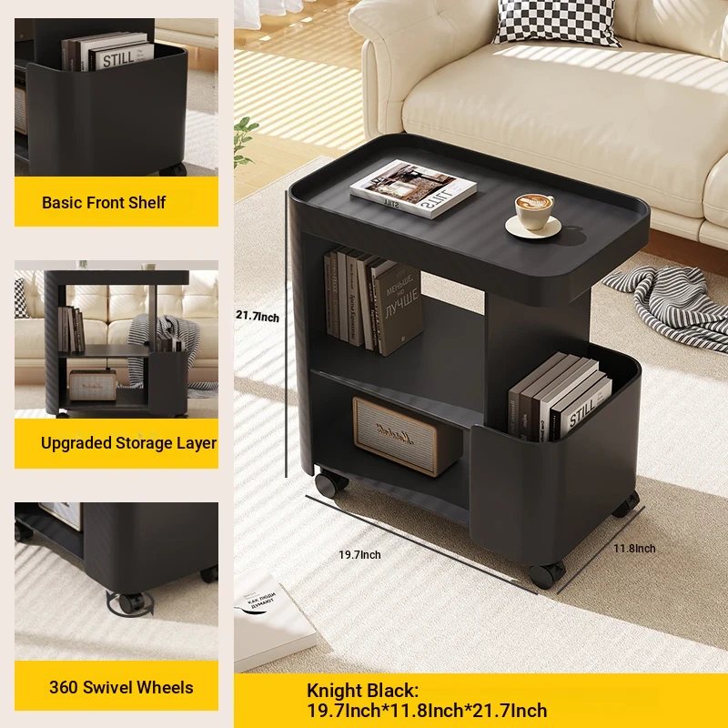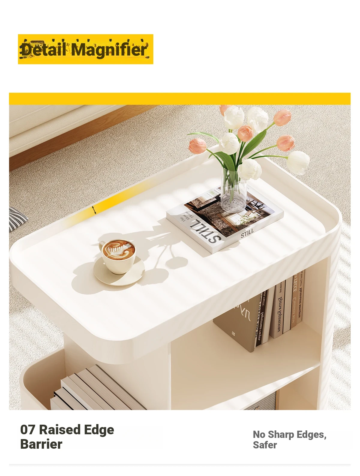 Dreamy Mobile Cream Wind Sofa Side Table - Versatile Nightstand & Living Room Tea Table with Iron Cart Design, Perfect for Modern Interiors!