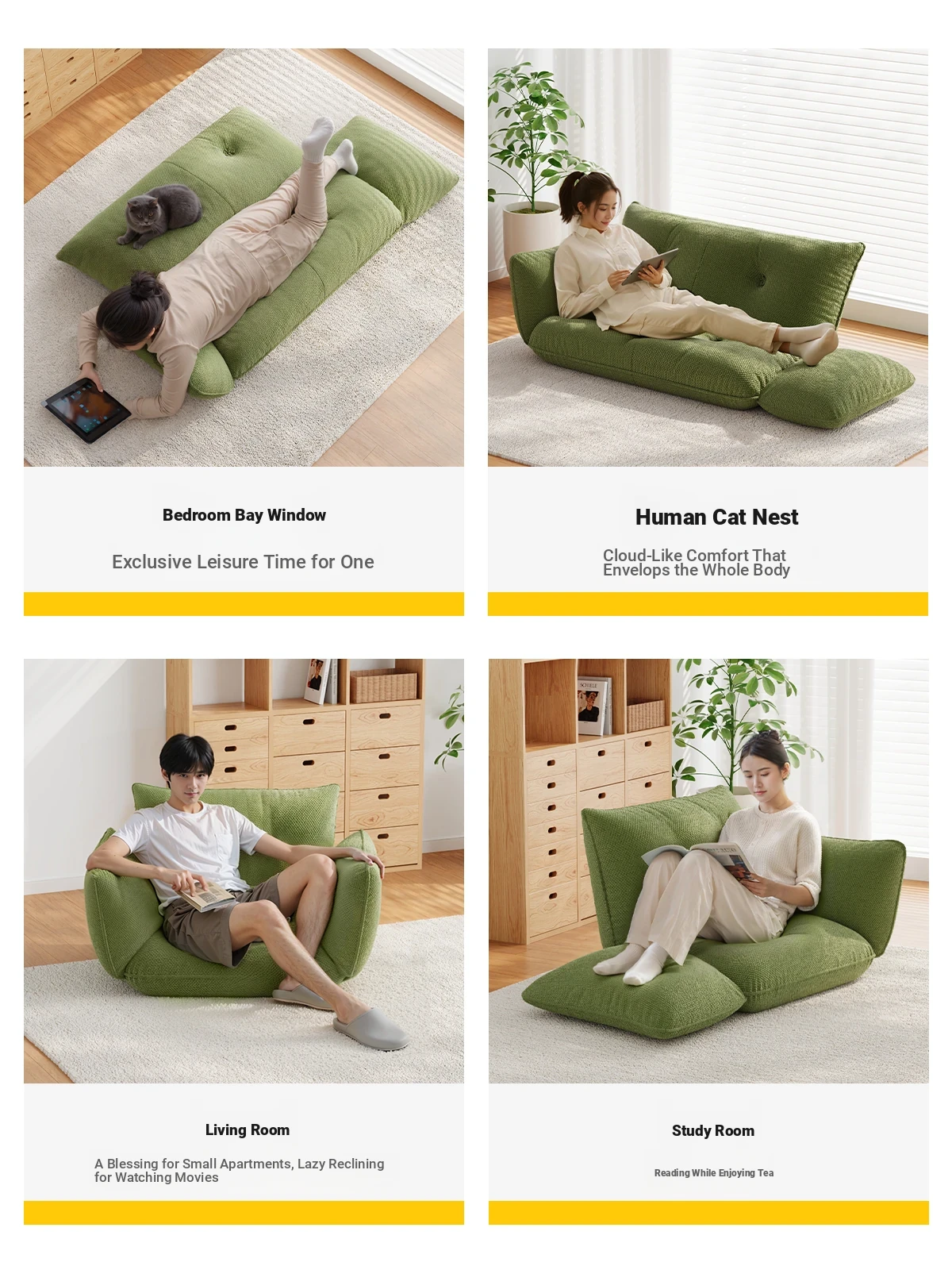 Lazy Sofa Bed - Adjustable Folding Tatami Chair for One or Two, Perfect for Relaxation in Bedroom or Living Room, Versatile and Comfortable for Any Space