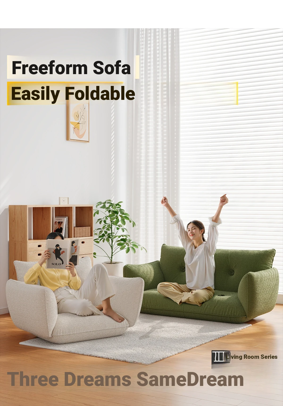Double Foldable Sofa-creamy-white