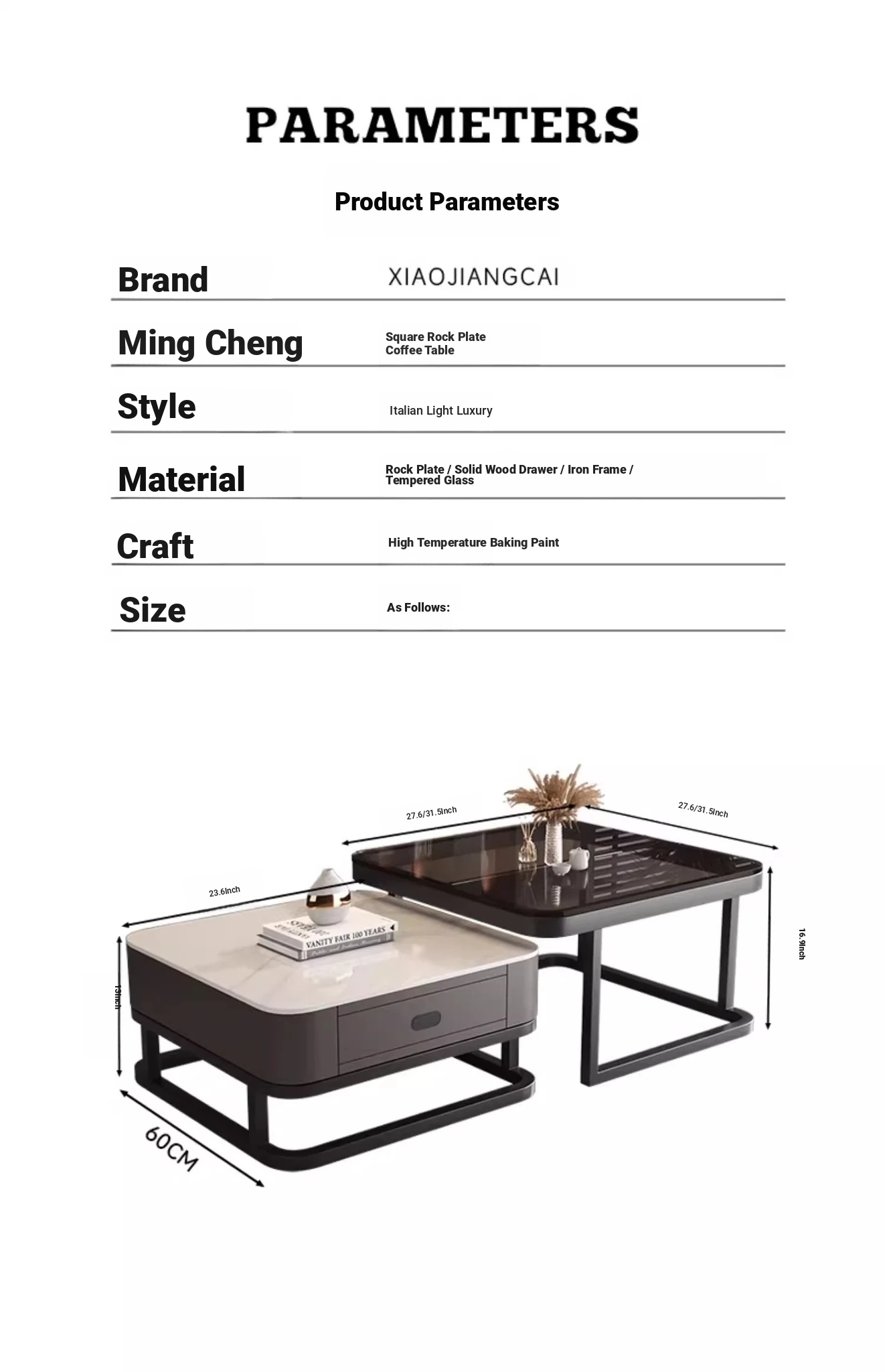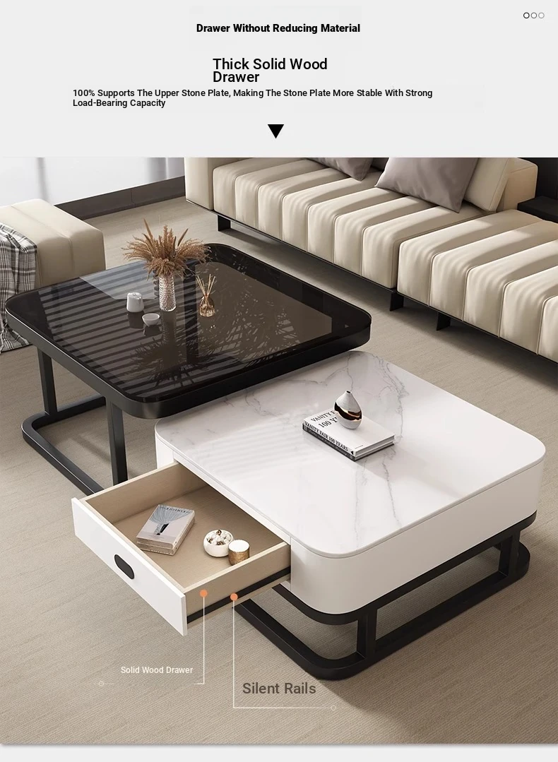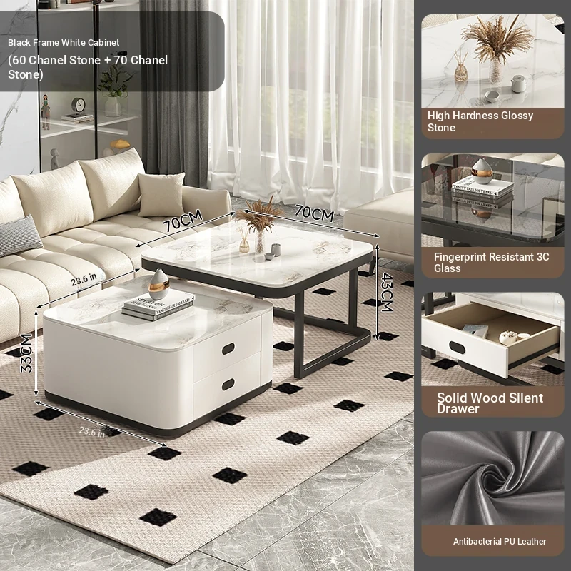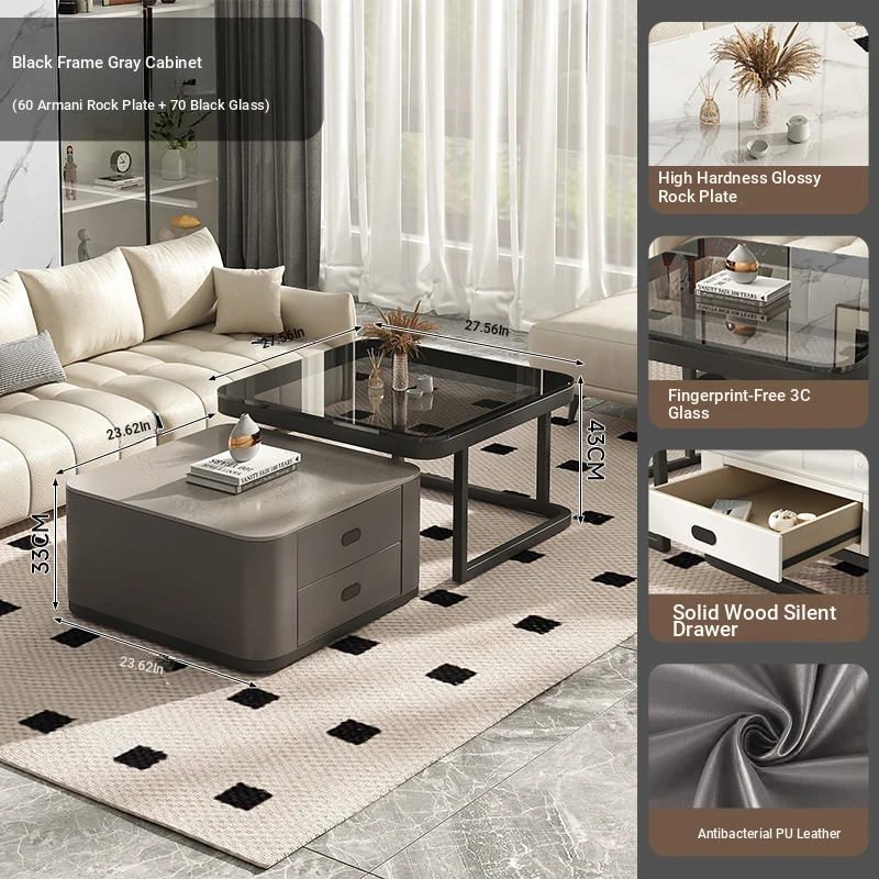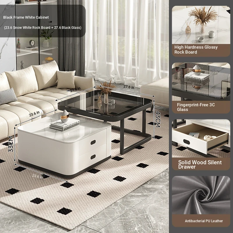 SAMEDREAM Solid Wood Coffee Table - Modern Square Glass Coffee Table for Living Room, Stylish and Minimalist Design, Perfect for Home Décor
