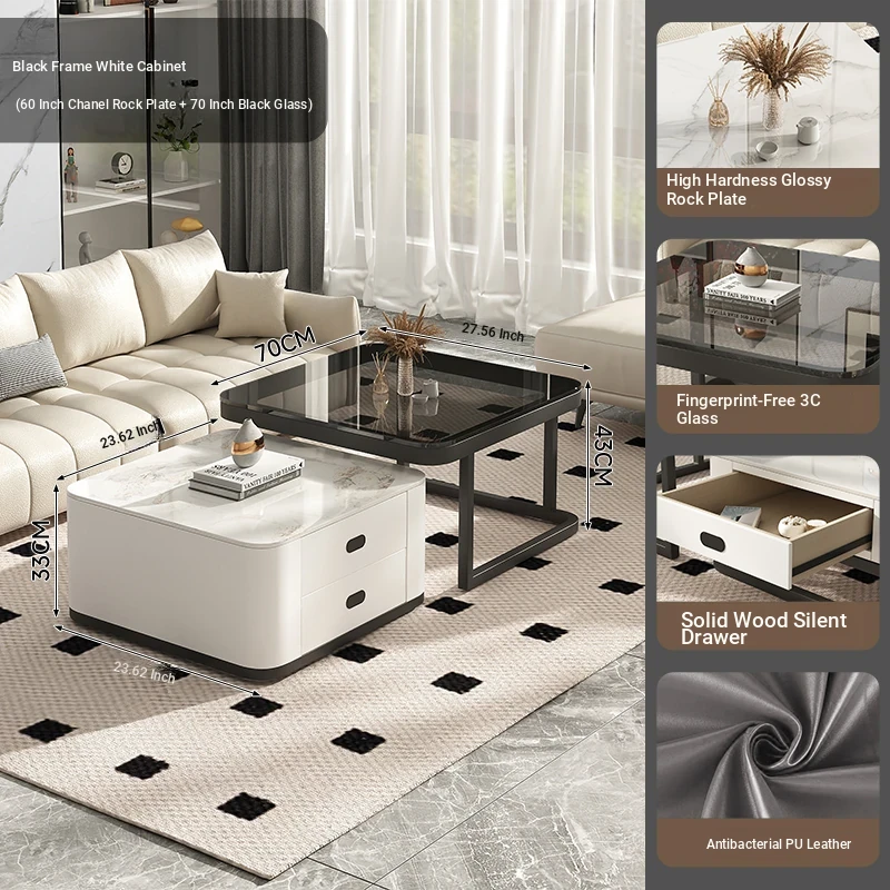 [White Black Rack] Snow Green White Rock Board Black Tempered Glass