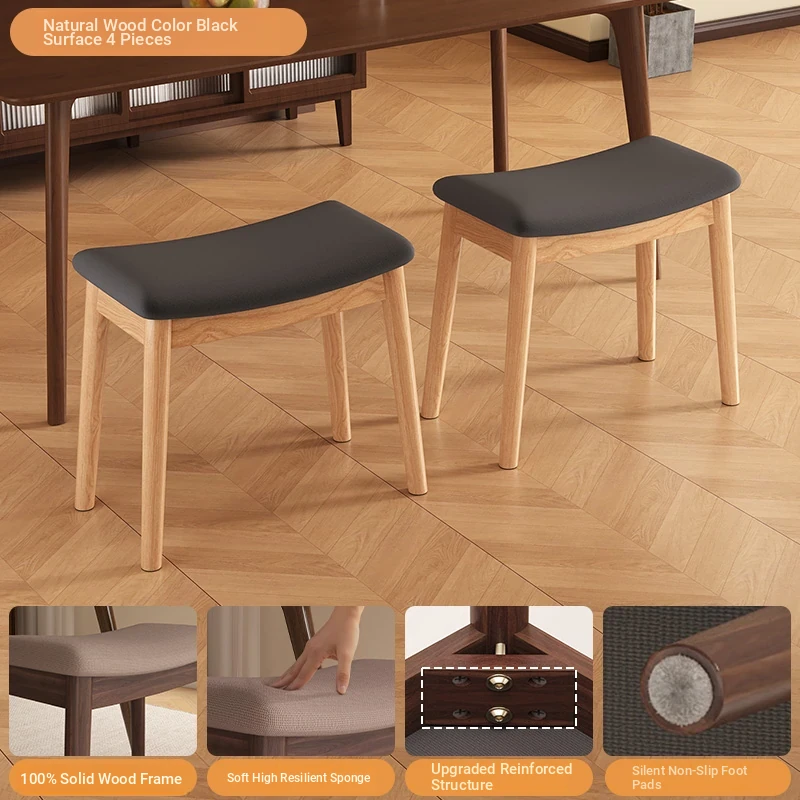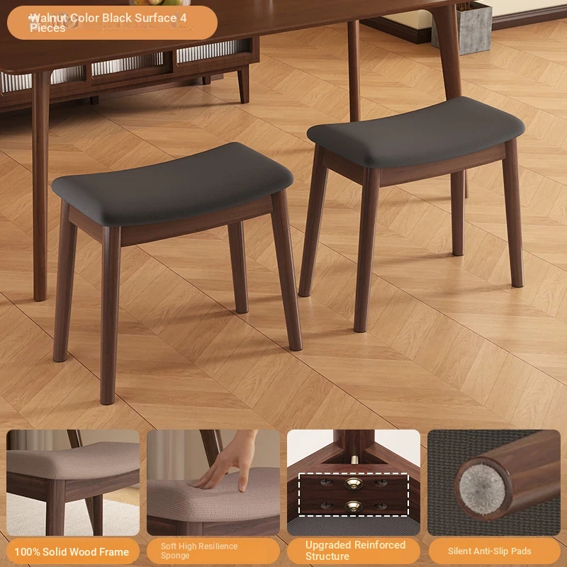 Solid Wood saddle stool [walnut stool leg + black stool surface] 4 Pack