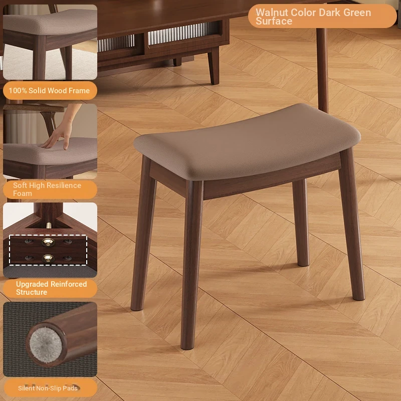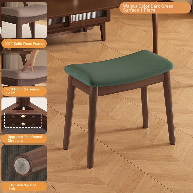 Solid Wood saddle stool [walnut stool leg + dark green stool surface] 1 pack