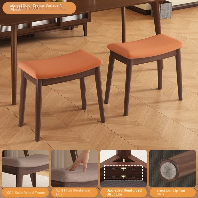 Solid Wood saddle stool [walnut stool leg + orange stool surface] 4 Pack
