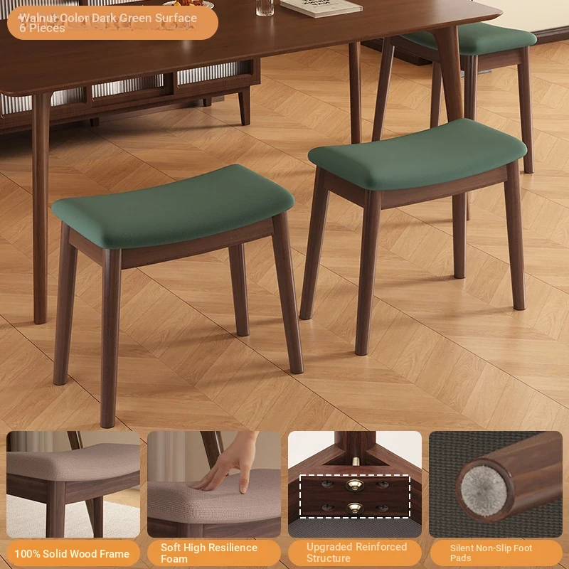 Solid Wood saddle stool [walnut stool leg + dark green stool surface] 6 Pack