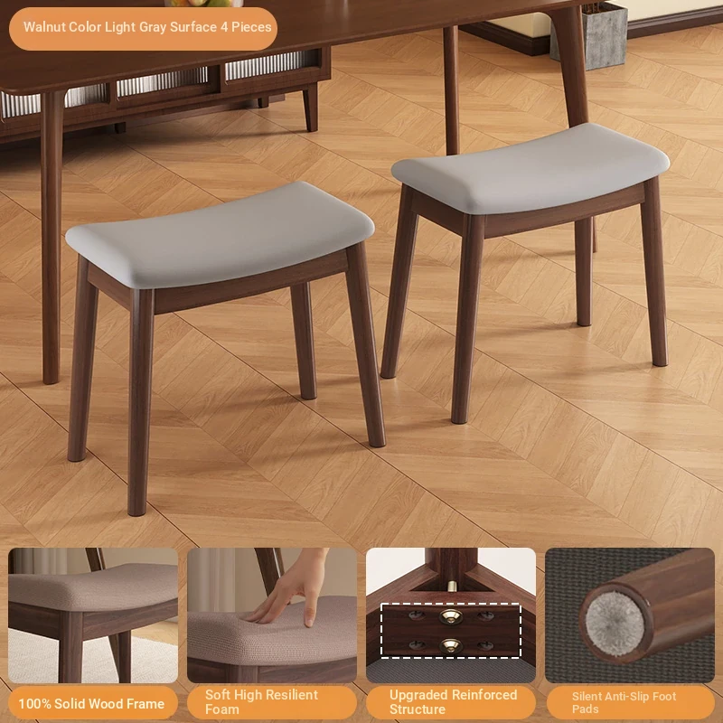 Solid Wood saddle stool [walnut stool leg + light gray stool surface] 4 Pack