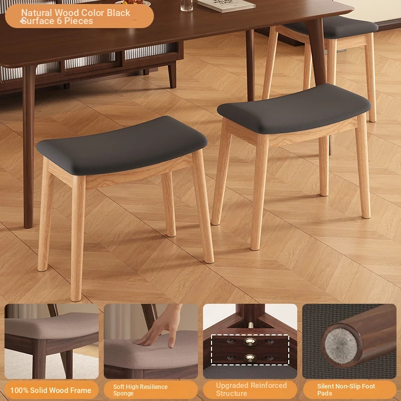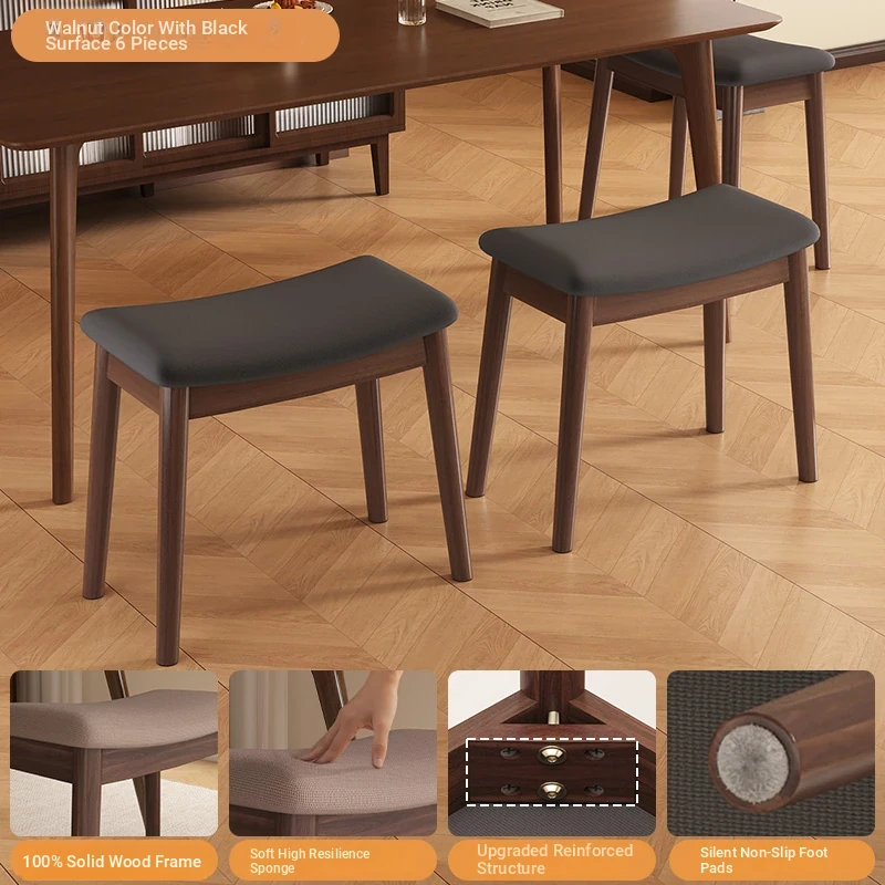 Solid Wood saddle stool [walnut stool leg + black stool surface] 6 Pack