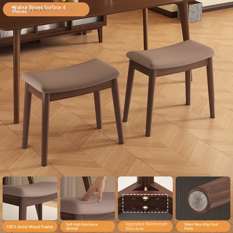 Solid Wood saddle stool [walnut stool leg + Brown stool surface] 4 Pack
