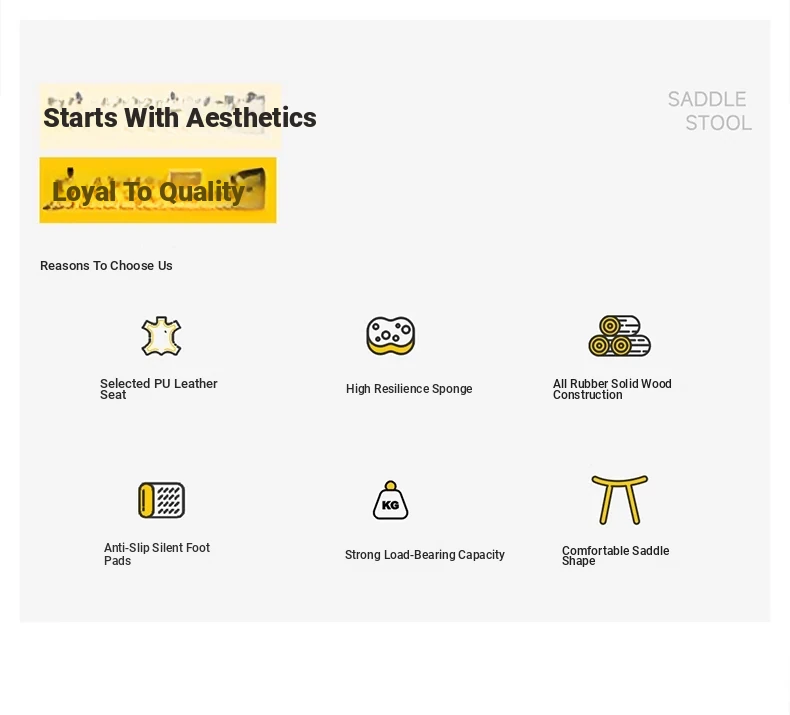 Solid Wood saddle stool [log stool leg + light gray stool surface] 6 Pack