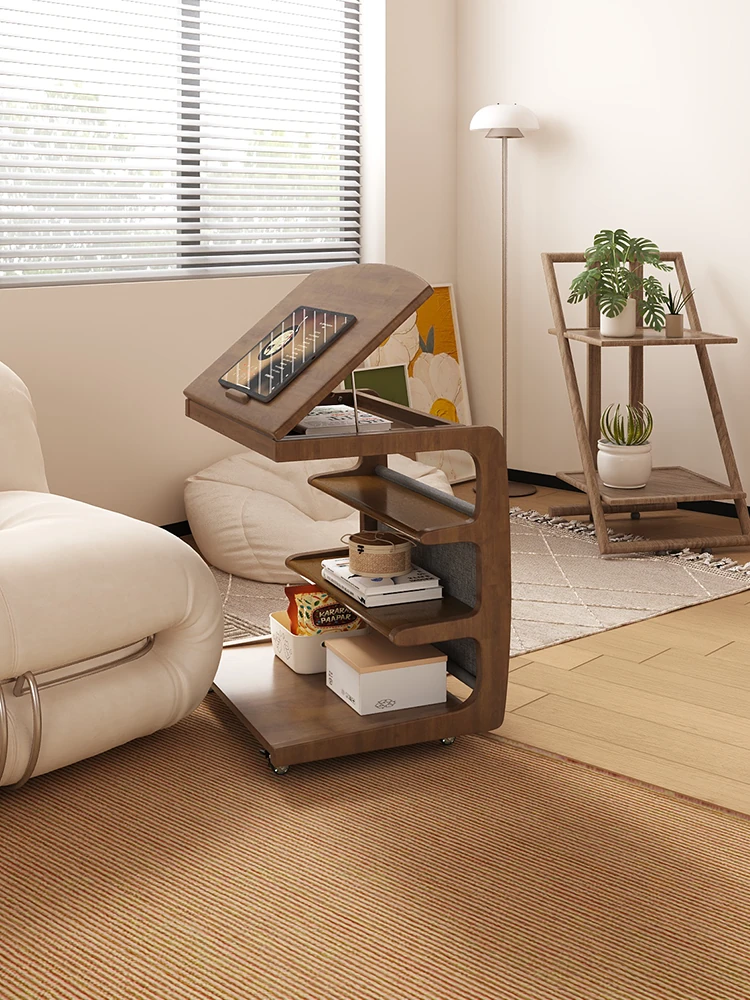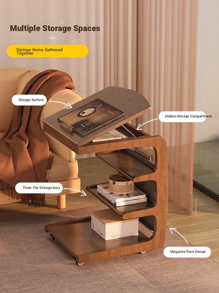 Solid Wood Side Table - Versatile Living Room Coffee Table, Movable Sofa Side Cabinet, Creative Bedroom Nightstand for Stylish Storage and Decor