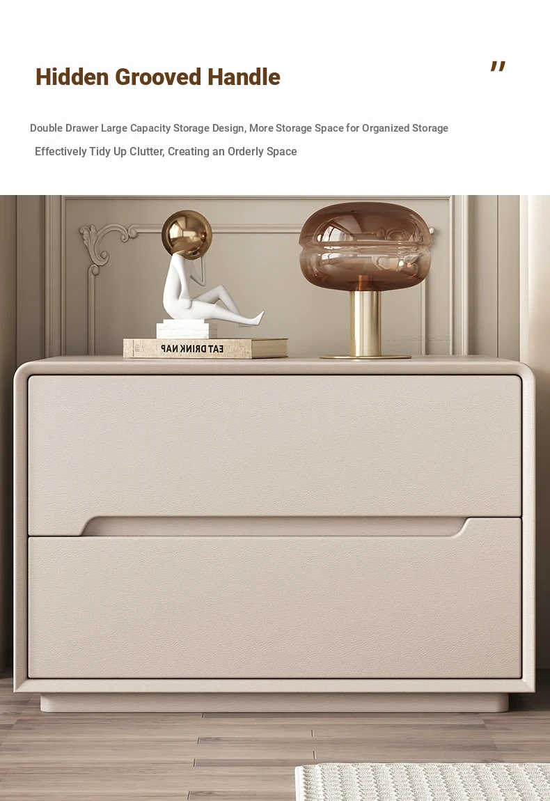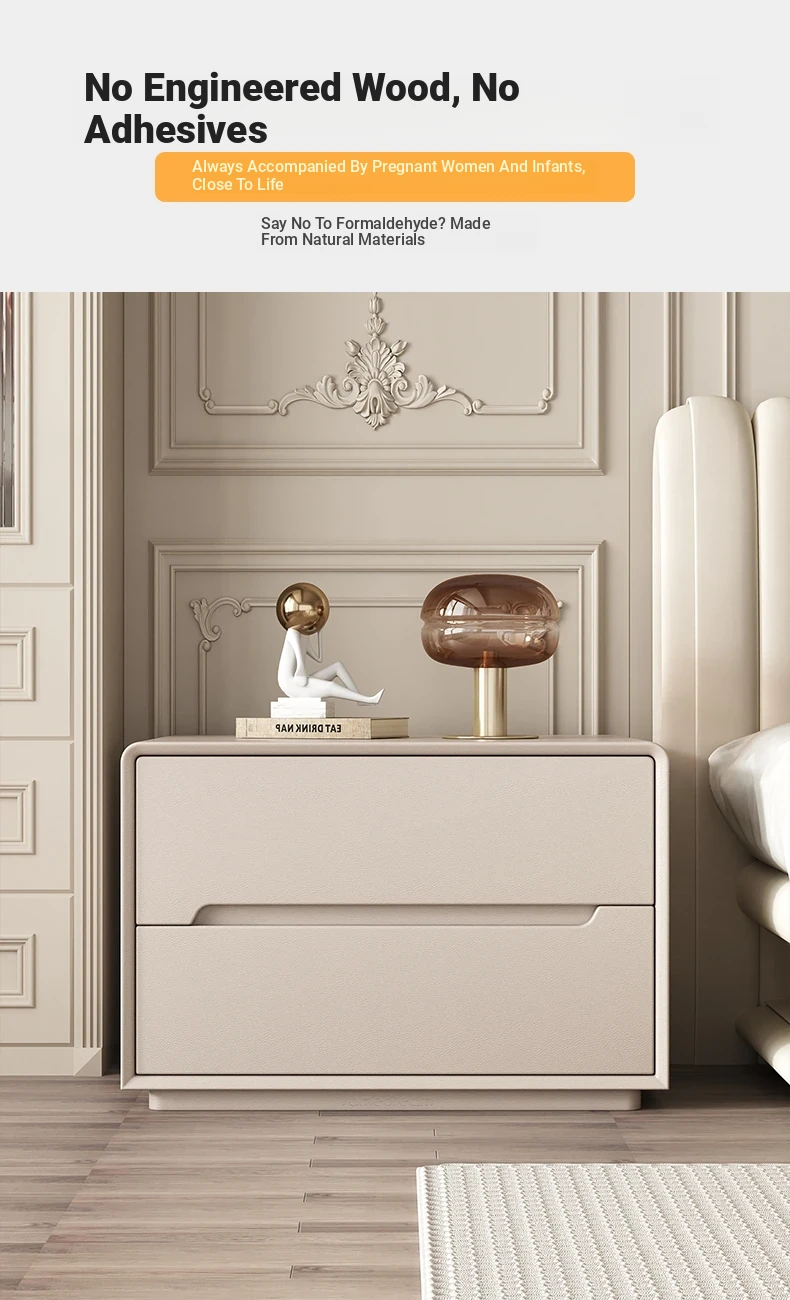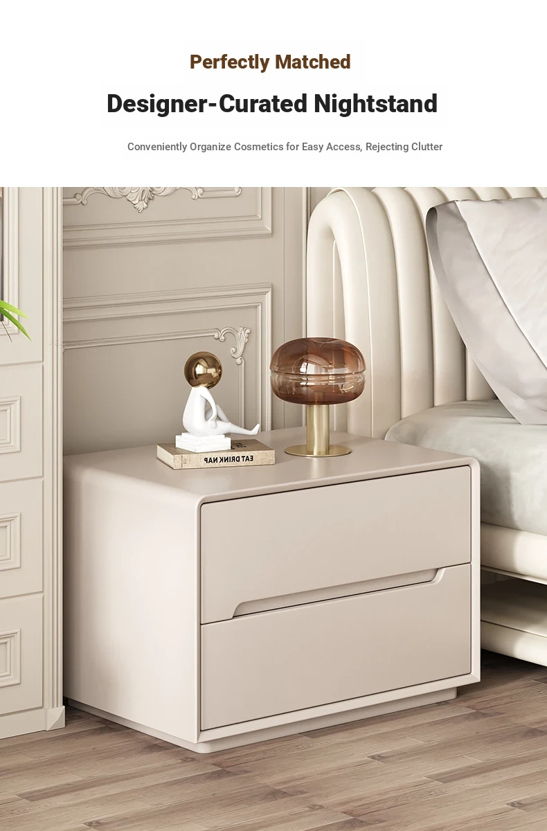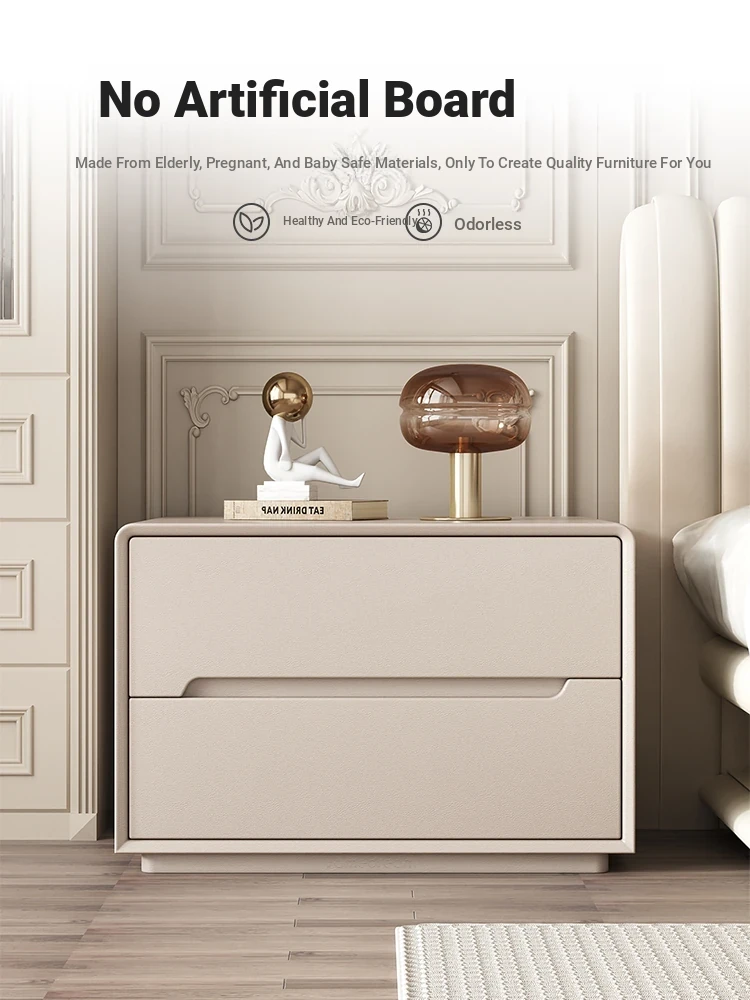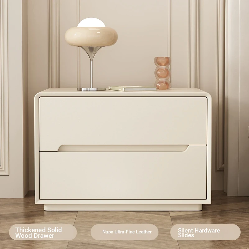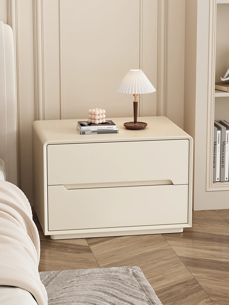 "Stylish Cream Modern Solid Wood Nightstand - A Chic and Compact Storage Solution for Your Bedroom - Perfect for Minimalist and Luxurious Home Decor"