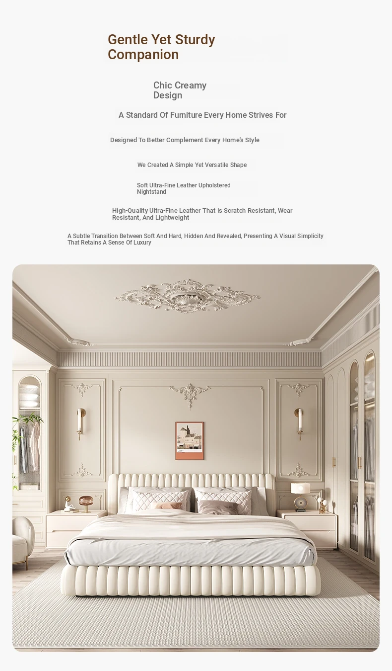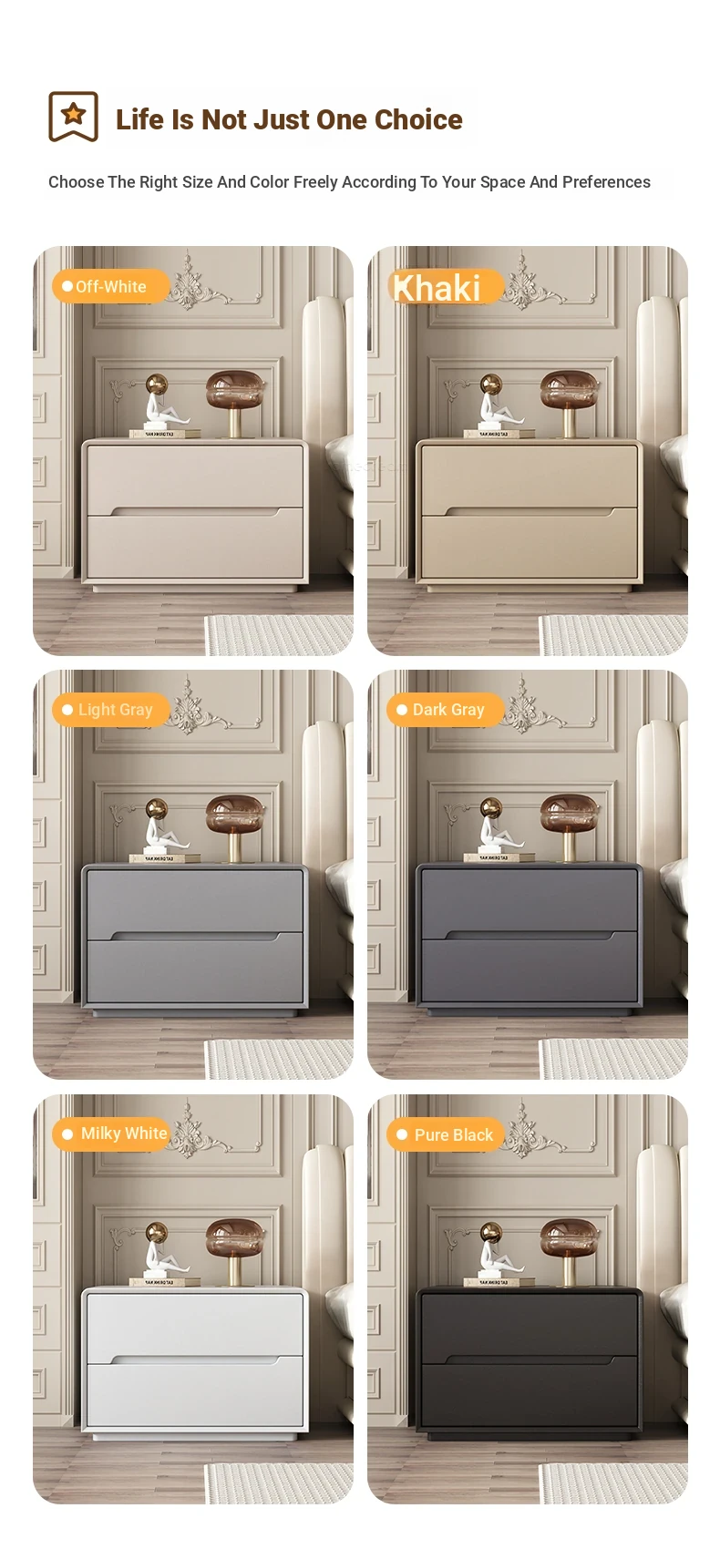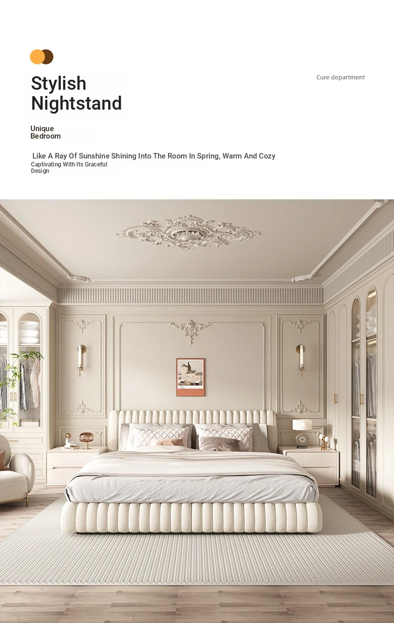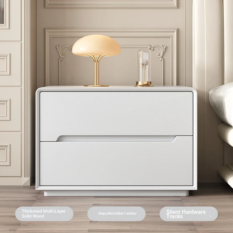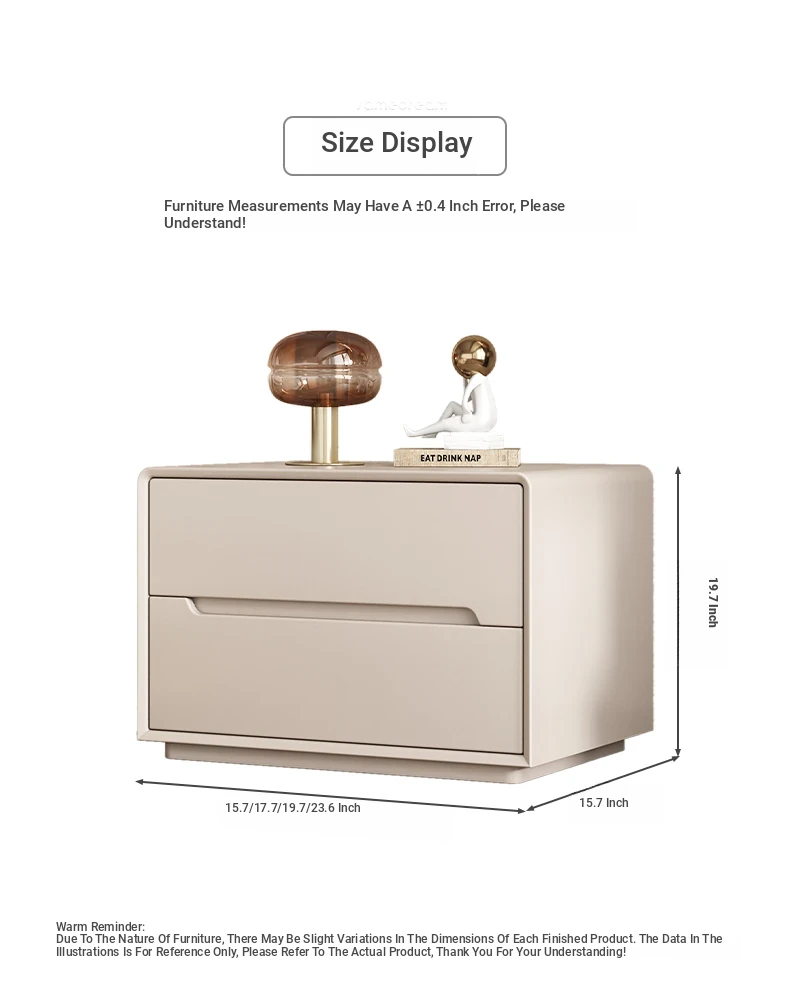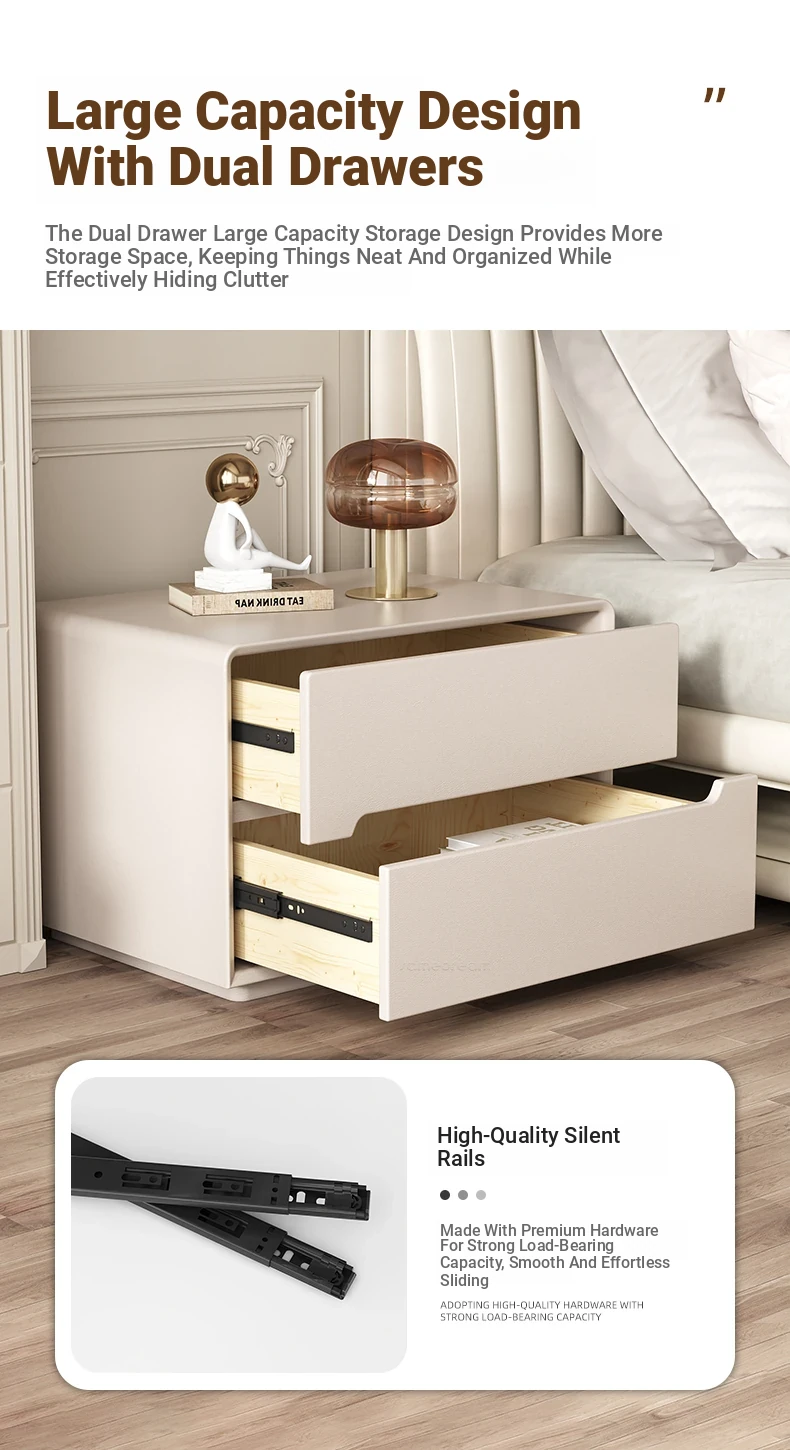"Stylish Cream Modern Solid Wood Nightstand - A Chic and Compact Storage Solution for Your Bedroom - Perfect for Minimalist and Luxurious Home Decor"