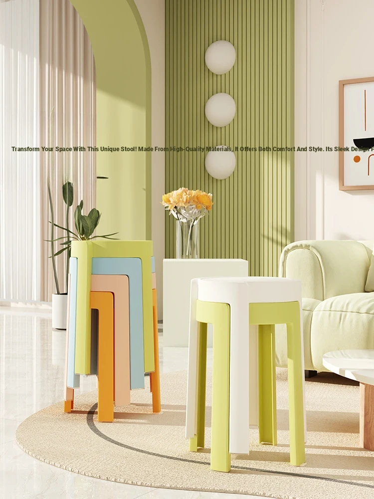 "Three Dreams Thickened Plastic Stool - Sturdy, Durable, and Modern Minimalist Design for Home Use, Stackable Dining and Extra Seating Solutions"